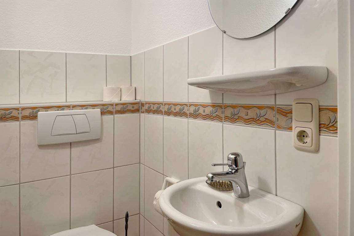 Unser "Gartenhaus" ist ein kleines, gemütliches Häuschen im Erdgeschoss (ca. 45 qm), dass sich in zweiter Reihe befindet und somit trotz der zentralen Lage reichlich Privatsphäre besitzt. Das gesamte Haus ist gefliest und wurde von der Eigentümerin liebevoll und praktisch zugleich eingerichtet, damit Sie sich wohlfühlen können. Der offen gestaltete Wohnbereich mit einer gut ausgestatteten Küche, einer zentralen Essgruppe und der bequemen Sitzecke ist der Mittelpunkt des Häuschen. Das Badezimmer verfügt über eine Dusche mit sehr flachem Einstieg und besonders schön ist hier, dass das WC separat liegt. Die beiden Schlafzimmer sind hell und ansprechend. Eines verfügt über ein Doppelbett und das andere über ein Einzelbett, so dass sich unser Gartenhaus ideal für 2 Personen oder eine kleine Familie eignet, die entspannte Urlaubstage erleben möchten. Die Terrasse mit Gartenmöbeln (ca. von April bis Ende September) lädt bei gutem Wetter zum Sonnen und Relaxen ein. Gerne dürfen Sie Ihren Hund mitbringen. Wir freuen uns auf Ihren Besuch!