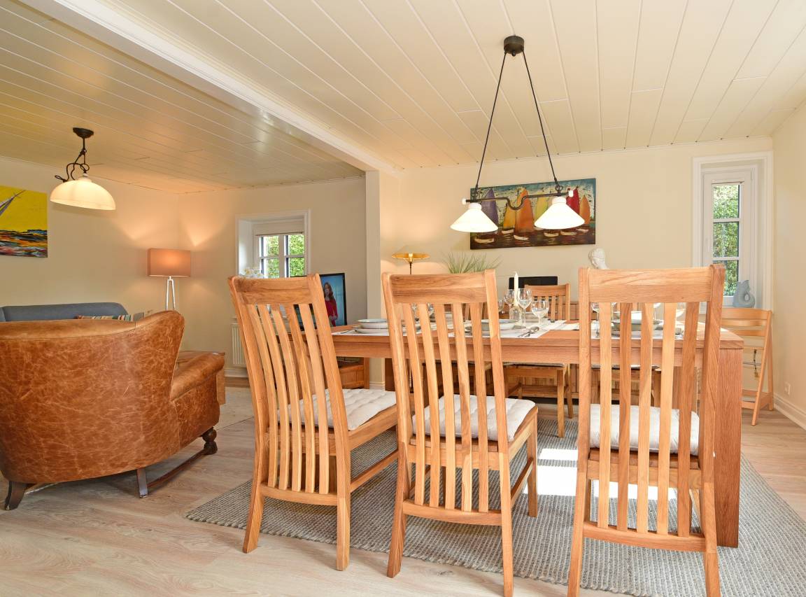 Hier finden bis zu sechs erwachsene Gäste oder Familien mit Kindern großzügig Platz, um eine erholsame Zeit zu verbringen.