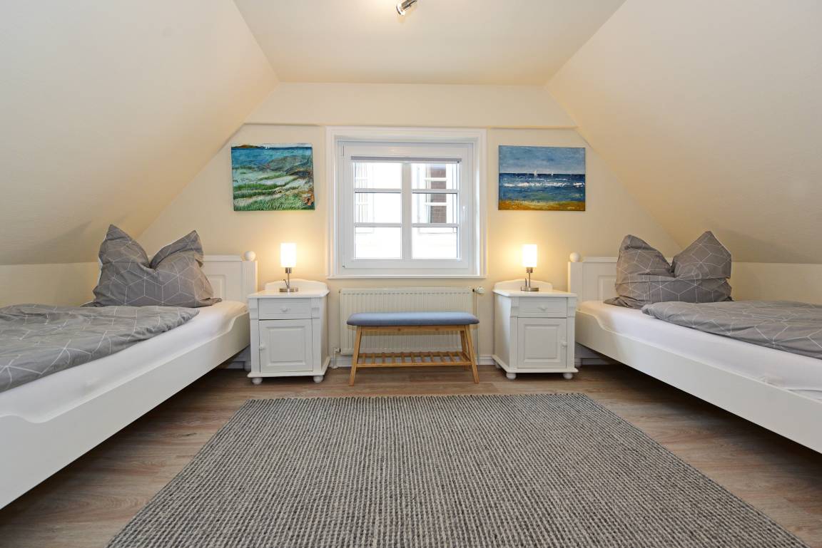 Im Obergeschoss sorgen zwei weitere Schlafzimmer - eines mit Doppelbett und eines mit zwei Einzelbetten - für erholsame Nächte.