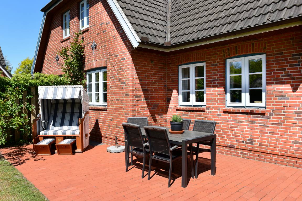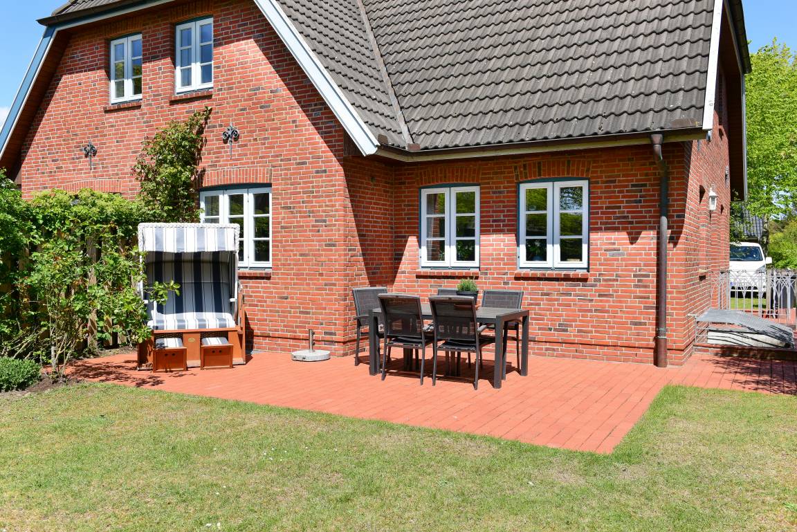 Der große Garten sowie die sonnige Terrasse mit Strandkorb und Gartenmöbeln sind ideal, um die frische Nordseeluft zu genießen.