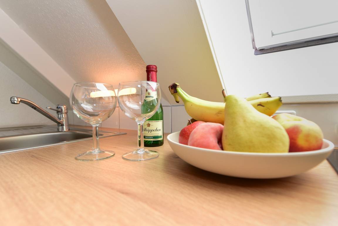 Für Ihren Komfort steht Ihnen eine Teeküche mit einem kleinen Kühlschrank zur gemeinschaftlichen Nutzung zur Verfügung, ideal für kalte Speisen oder kleine Erfrischungen. Zudem können Sie gegen eine kleine Gebühr unsere Waschmaschine nutzen, um Ihre Wäsche während Ihres Aufenthalts zu waschen.