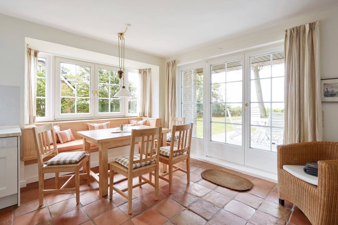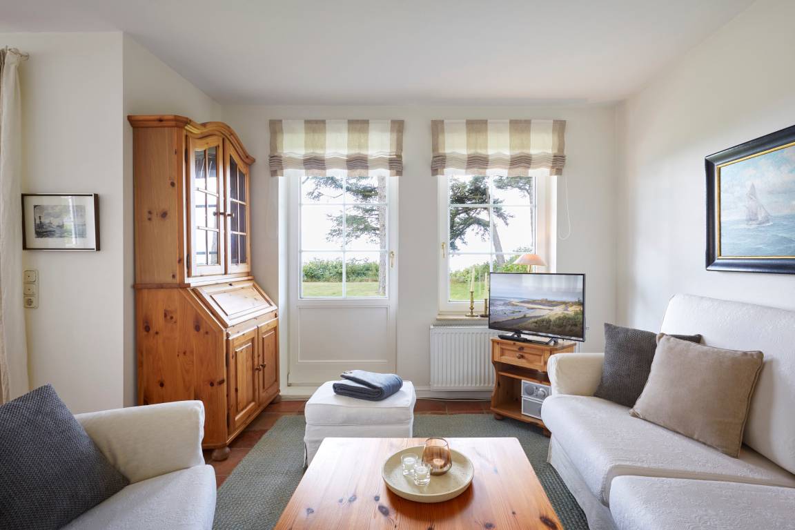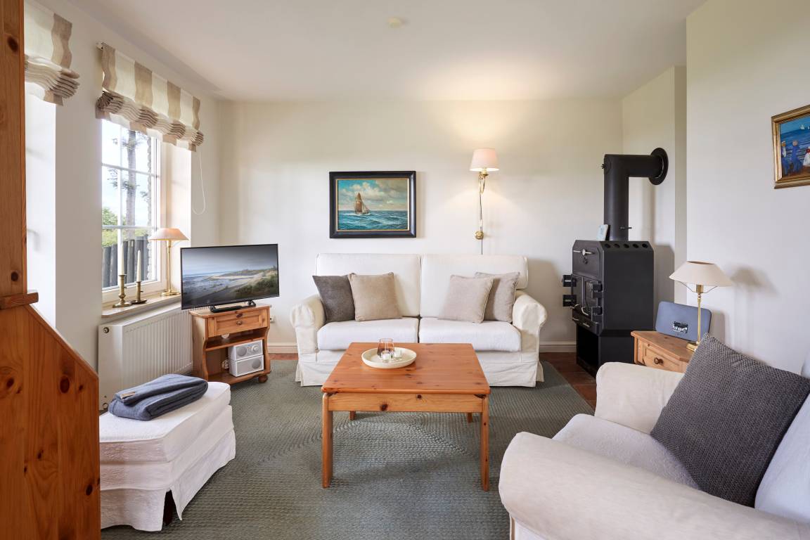 Die Unterkunft befindet sich im Erd- und Untergeschoss eines charmanten reetgedeckten Friesenhauses aus dem Jahr 1985. Die ruhige Lage am Ende einer kleinen Spielstraße, nur wenige Schritte vom Strand und dem alten Nordsee-Kurpark entfernt, macht sie perfekt für Erholungssuchende, Wassersportler, Genießer und Meeresliebhaber. Zu Fuß erreichen Sie das Zentrum Wyks in etwa 20 Minuten entlang der Promenade. Die Wohnung ist mit gelaugten Kiefernmöbeln sowie einem naturweißen Sofa und Sesseln eingerichtet und bietet Platz für bis zu 4 Personen. Zur Ausstattung gehören zwei Schlafzimmer, zwei Bäder mit Dusche und WC – eines davon zusätzlich mit Badewanne - sowie ein Wohn- und Essbereich. Ihr Auto können Sie bequem auf dem zugehörigen Parkplatz abstellen.