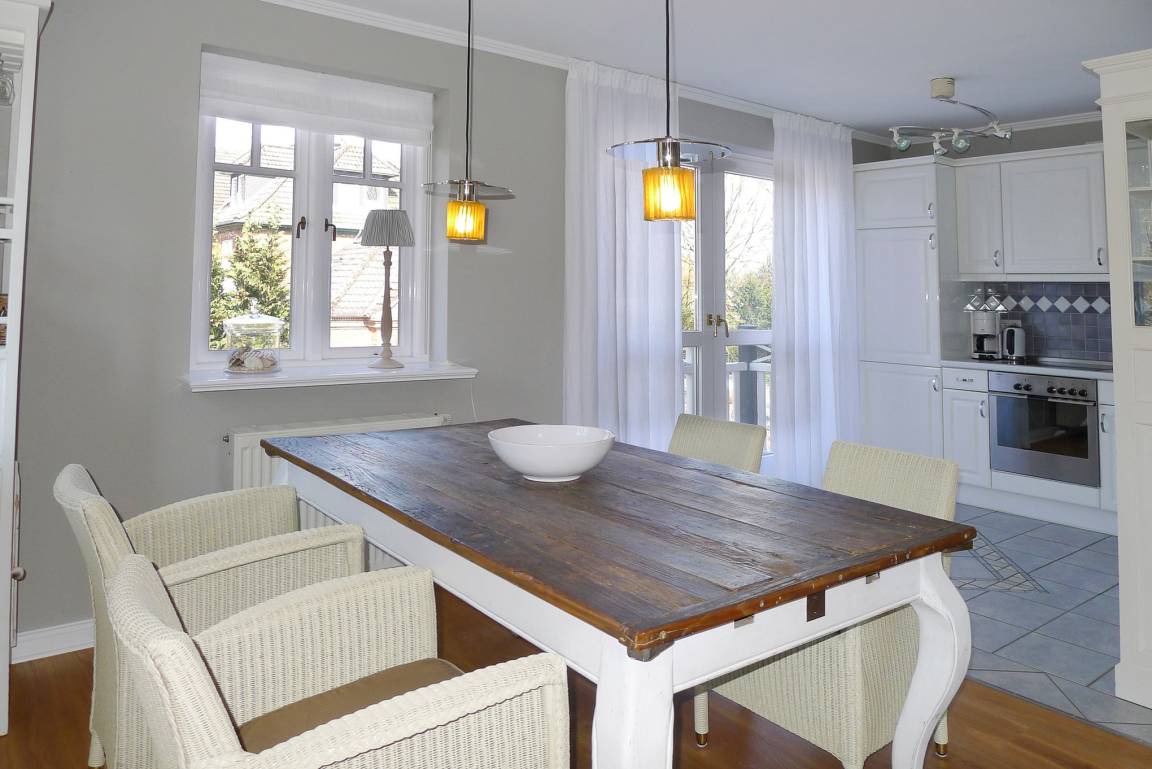 Herzlich willkommen in unserer Wohnung Seedüne. Die helle und liebevoll eingerichtete Wohnung geht über zwei Etagen. Das Wohnzimmer erstreckt sich mit seinem Essbereich und der anschließenden Küche über die gesamte Süd-Westseite: Sonne vom Frühstück bis zum Sonnenuntergang. In der voll ausgestatteten Küche zaubern Sie Köstlichkeiten und lassen die Meeresbrise über den zweiten Balkon herein. Auch ein dänischer Eisenofen für gemütliche Abende fehlt nicht. Die Wohnung liegt direkt am Alten Kurpark. Ein 200 m weiter Weg führt Sie durch den Park mit seinem alten Baumbestand direkt zum Südstrand. Vor der Tür finden Sie nicht nur Strand und Meer, sondern auch Einkaufsmöglichkeiten, einen Bäcker, einen Friseur, die Bushaltestelle und eine gute Auswahl an verschiedenen Restaurants.