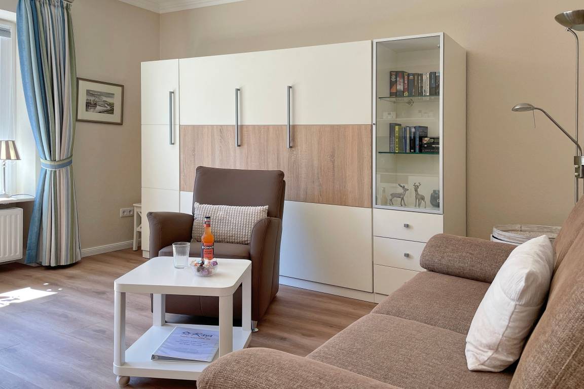 Modern und in bester Lage am Sandwall in Wyk werden zwei Personen in der Norderaue herzlich willkommen geheißen. In nur wenigen Schritten sind Sie mitten im Geschehen der Innenstadt und natürlich am beliebten Föhrer Strand.