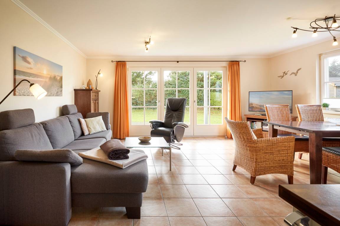 Wir begrüßen Sie ganz herzlich in unserem Haus am Wiesenweg. Der stilvolle Bau mit 3 Wohnungen liegt in zentraler Lage am Südstrand von Wyk. Den Strand sowie die Innenstadt und das Wellenbad erreichen Sie in fünf Gehminuten. Die Wohnung Bonsum ist geschmackvoll und komfortabel ausgestattet. Ob zu zweit am Kamin oder für die ganze Familie, Sie finden genügend Platz für 2 bis 4 Personen. Auf der Spiel- und Liegewiese ist genügend Platz für Groß und Klein. Wir freuen uns auf Ihren Besuch.** In der Umgebung wird das neue Schwimm-und FreizeitBad „Aqua Föhr" entstehen. Die Tiefbauarbeiten zur Vorbereitung sind abgeschlossen. Update 2026: Für den Neubau des AquaFöhr laufen die Ausschreibungen und es wird zur Saison 2026 zu keinen lärmerregenden Arbeiten kommen. Quelle: Pressesprecher Wyk **