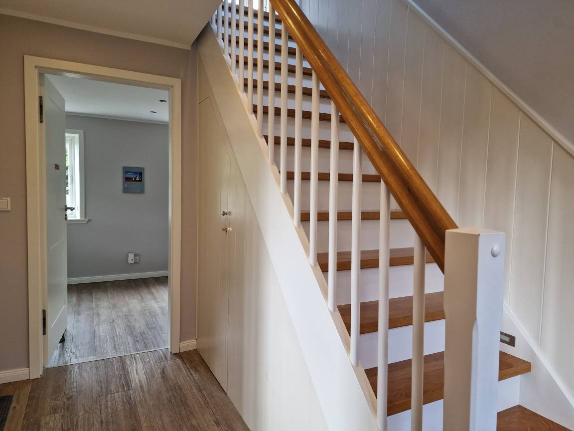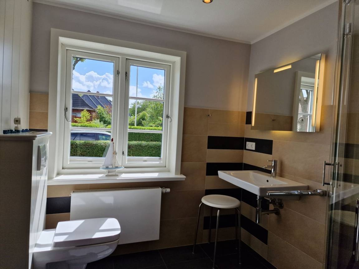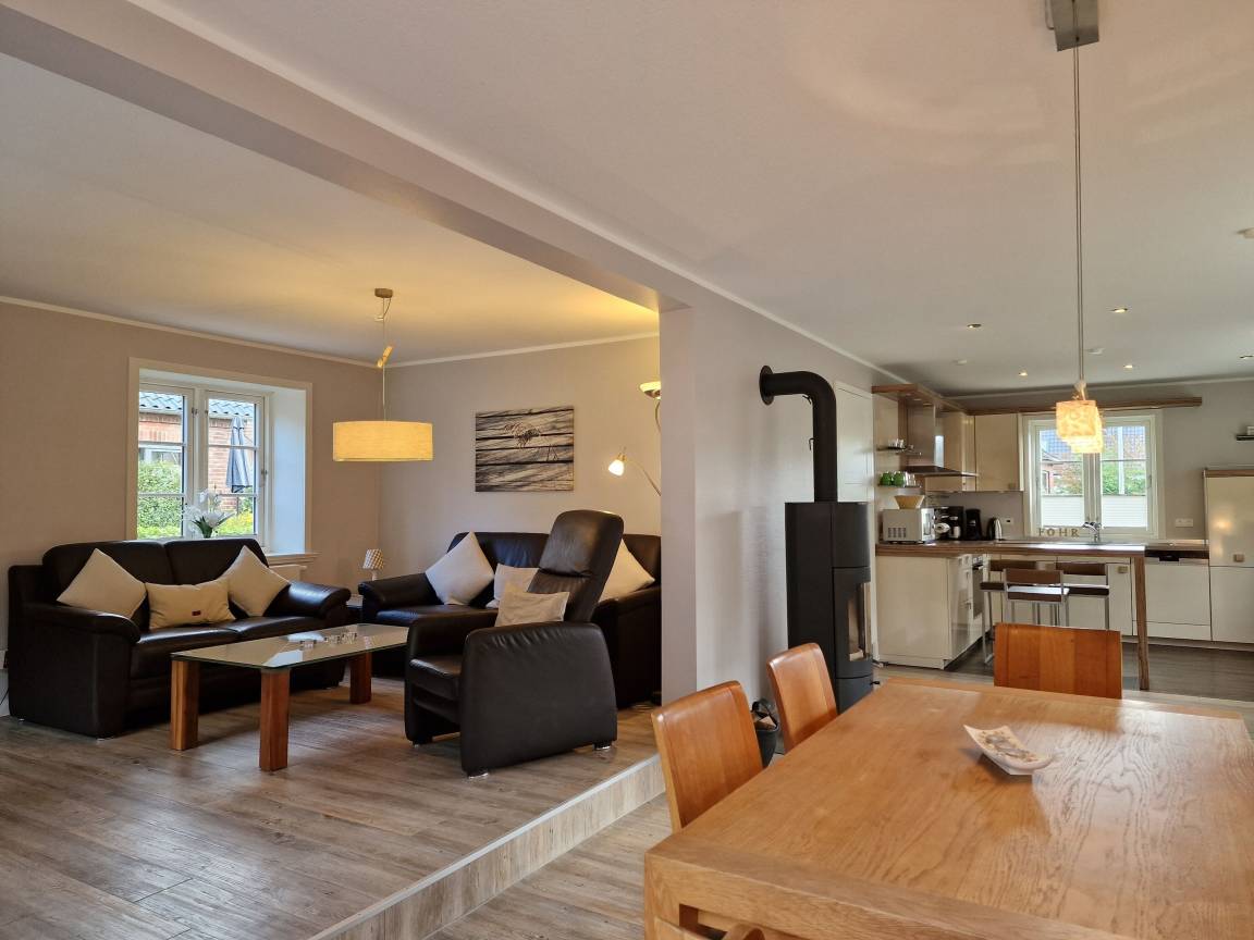 Im Erdgeschoss des Hauses befindet sich ein Duschbad mit Sauna für Ihre Gesundheit, eine voll ausgestattete Küche, ein Essplatz, eine gemütliche Sitzecke mit Kaminofen für kalte Tage, eine Terrasse mit Gartenmöbeln und Strandkorb (während der Saison) und angrenzendem großen Garten mit Schaukel für unsere kleinen Gäste und ein Basketballkorb. Im Obergeschoss gibt es eine kleine Galerie, zwei Schlafzimmer und ein weiteres Duschbad mit einem Waschtrockner.