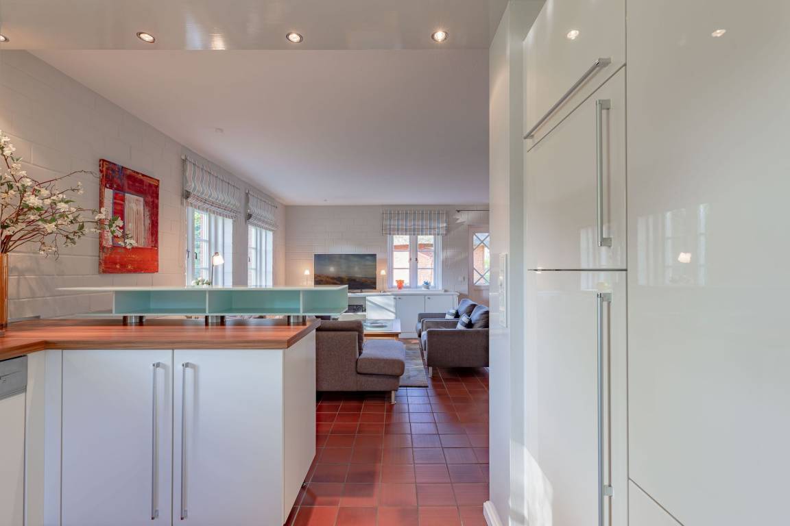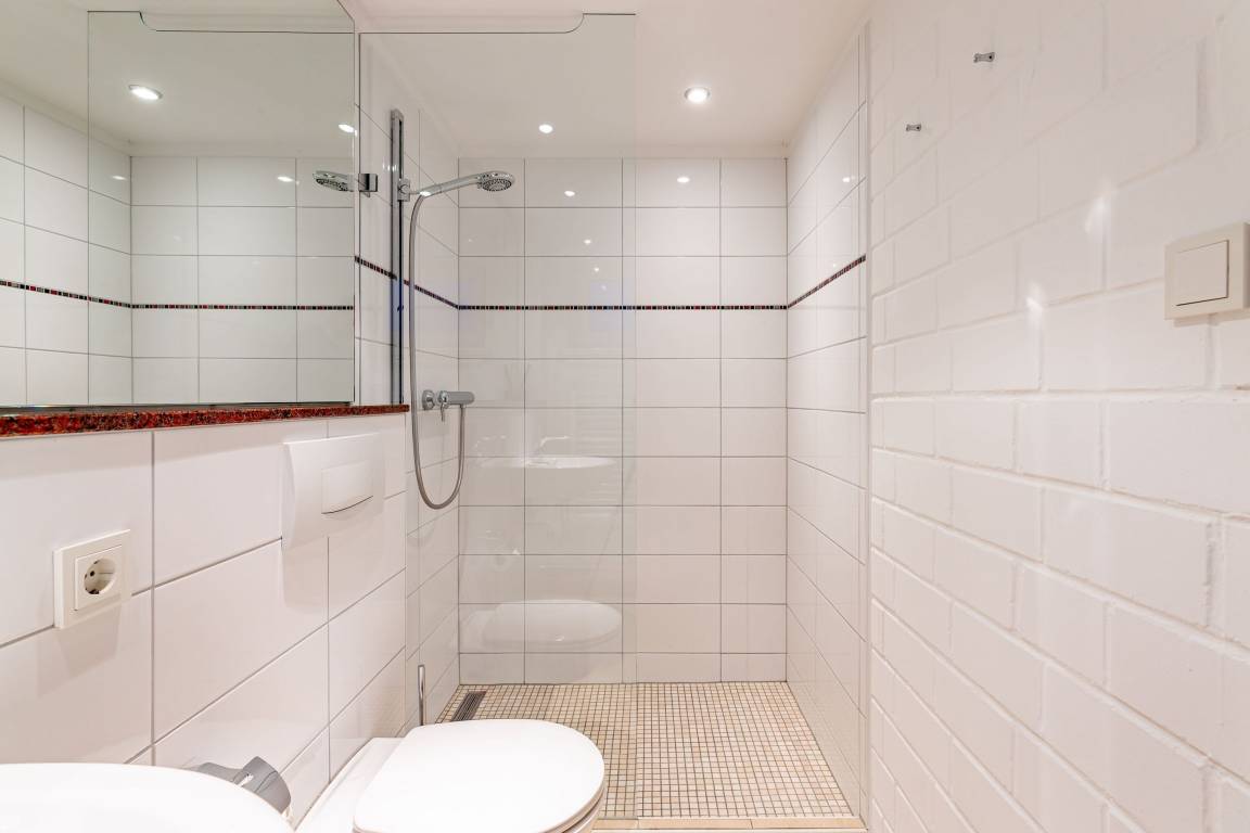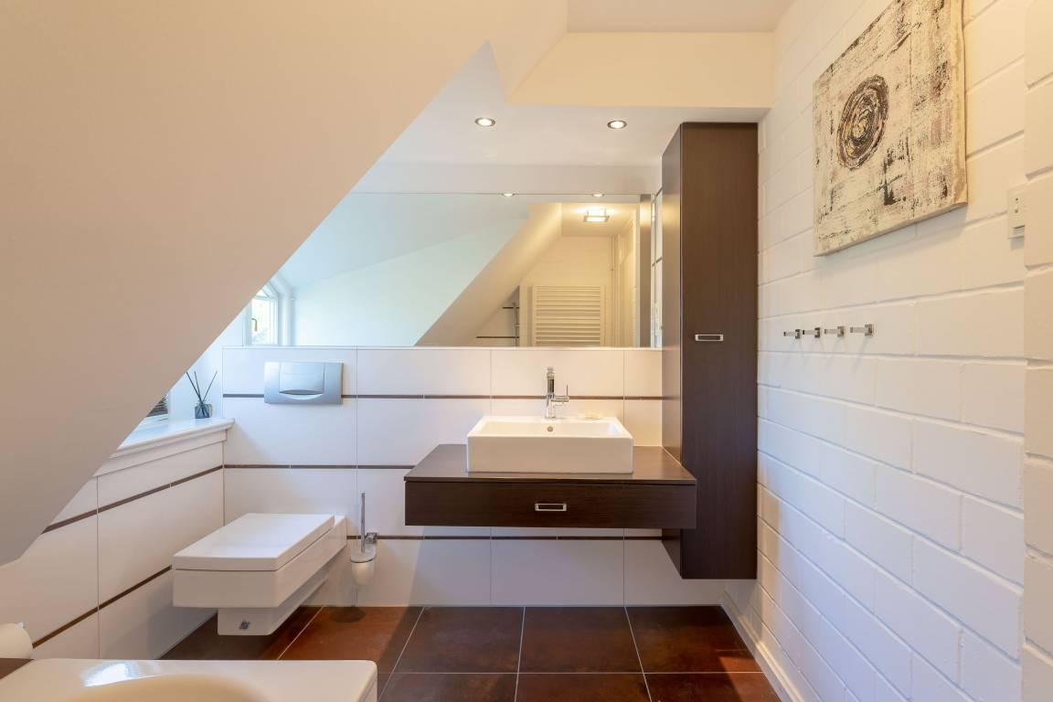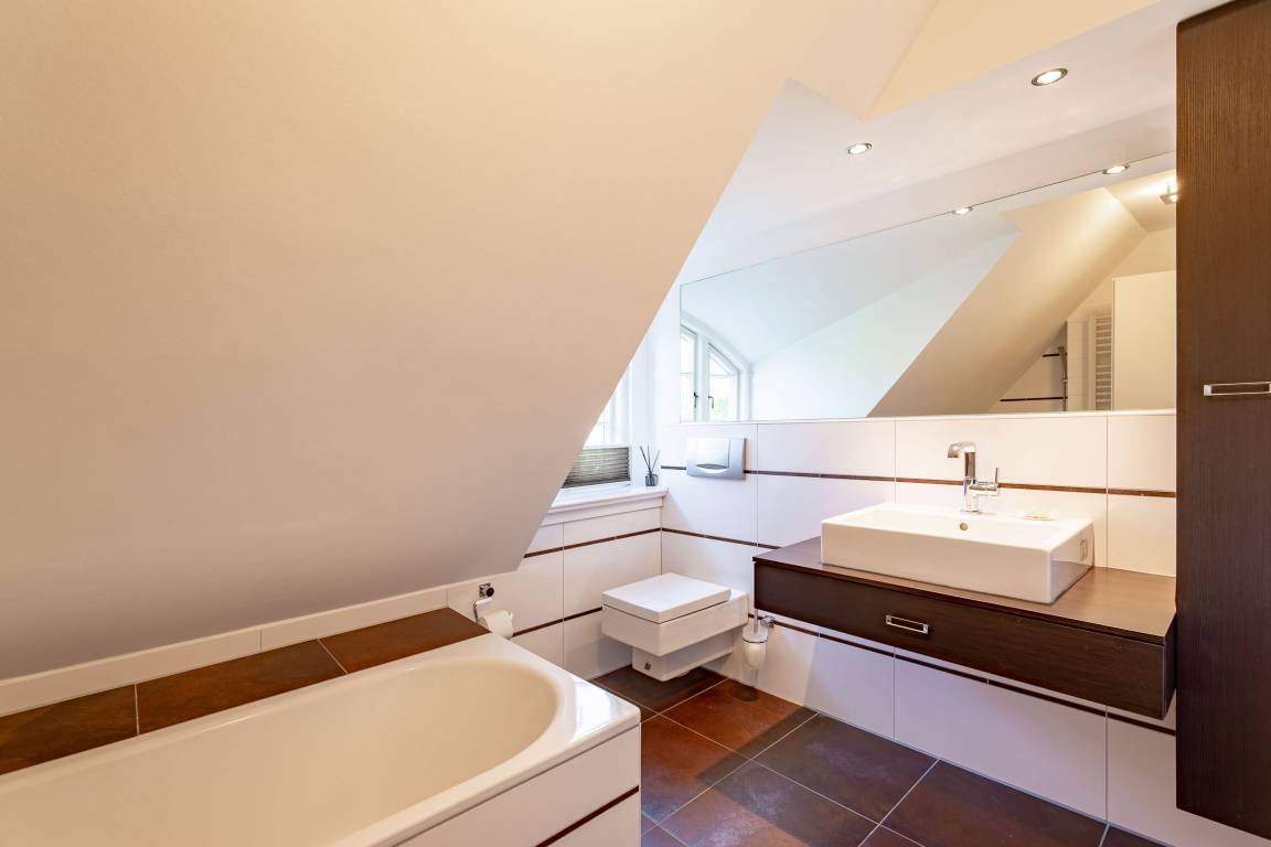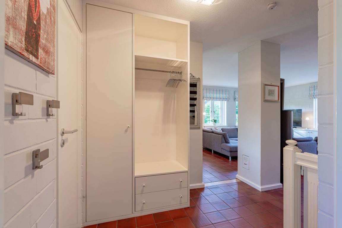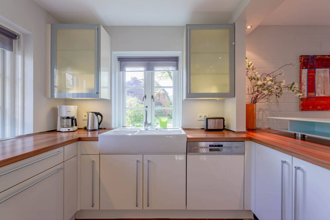 Diese Reetdachdoppelhaushälfte im friesischen Baustil auf einem parkähnlichen Grundstück liegt nur 150m vom Südstrand entfernt. Am Rande des Garten wurde der alte Baumbestand des Kurparks erhalten. Im Erdgeschoss befinden sich ein großes Wohnzimmer mit Essbereich und direktem Zugang zur Südterrasse. Gartenmöbel und Strandkorb warten hier auf Sie. In der kalten Jahreszeit schafft der drehbare Kaminofen eine behagliche Atmosphäre. Im Obergeschoss befinden sich zwei Schlafräume sowie ein begehbares Ankleidezimmer. Das moderne Badezimmer mit Waschtisch und Badewanne lädt zur Entspannung ein. Im Souterrain befindet sich die Sauna, sowie eine Dusche und ein kleiner Hauswirtschaftsraum mit Waschmaschine und Trockner.