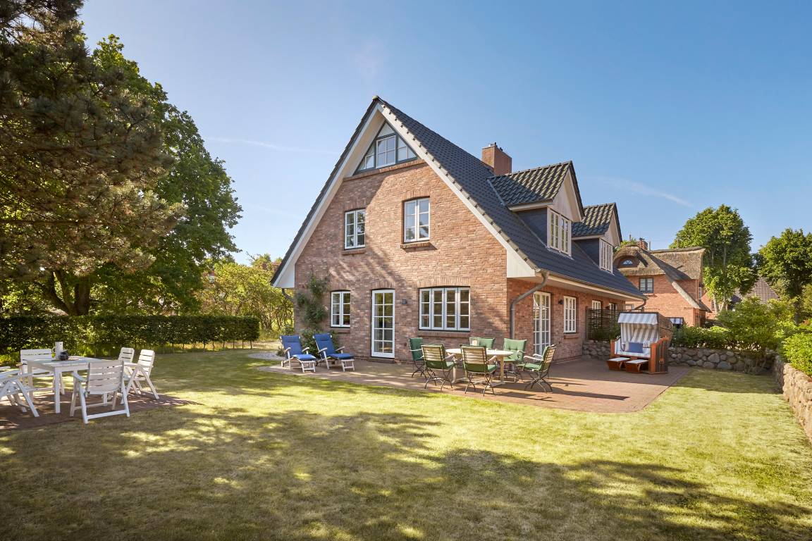 In sehr ruhiger Lage, aber unmittelbarer Nähe zum Wyker Südstrand und in direkter Nachbarschaft zu den Flächen des alten Golfplatzes auf dem Gelände des ehemaligen Kaiserhofes ist die „Residenz am alten Golfplatz" entstanden. Mit nur wenigen.Schritten gelangen Sie zum Strand und zur Promenade, welche Sie ins Herz von Wyk führt. Die Innenstadt mit ihren Cafés, Restaurants und Einkaufsmöglichkeiten ist schnell und bequem zu erreichen. Das Doppelhaus ist mit einem traditionellen Friesenwall umgeben. Bei der Innenausstattung wurde an alles gedacht. Es gibt einen großzügigen Wohn- Essbereich mit Kaminofen im EG, ein zweites kleines Wohnzimmer im OG . Ein großer Garten, zwei Terrassenpätze und ein Strandkorb runden das Bild ab. Hier genießen Sie die schönsten Tage des Jahres.
