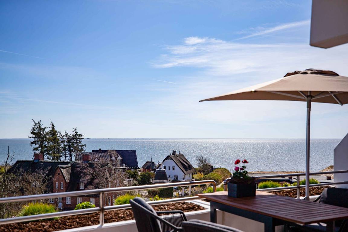 Zwischem dem Wyker Südstrand und Nieblum steht das beliebte Terrassenhaus Haus Halligblick. Die Lage ist wohl einmalig: direkt am Meer, mit Blick nach Süden in Richtung der Halligen. Ganz in der Nähe liegen der Golf- und Sportflugplatz, die bequem zu Fuß zu erreichen sind. Von dort ist es nur ein Sprung nach Greveling, einer Gruppe von Reethäusern im Friesenstil. Nach Nieblum, einem der schönsten Orte Schleswig-Holsteins, ist es kaum weiter als zum Zentrum Wyks. Nicht ohne Grund gilt der Südstrand als Geheimtipp.