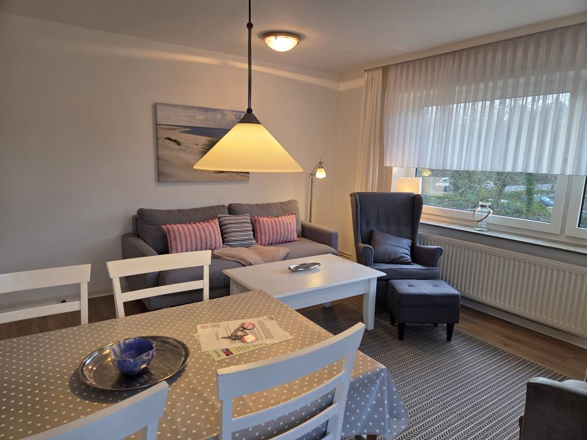 Diese schöne und moderne 70 qm große Ferienwohnung befindet sich im Obergeschoss einer gepflegten Wohnanlage nahe dem Südstrand. Zur Anlage gehören ein Haupthaus mit vier Wohneinheiten sowie eine Bungalowsiedlung mit acht Einheiten.