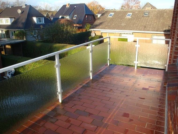 Zur Wohnung gehört ein möblierter Balkon, der sich ideal für entspannte Stunden im Freien eignet.