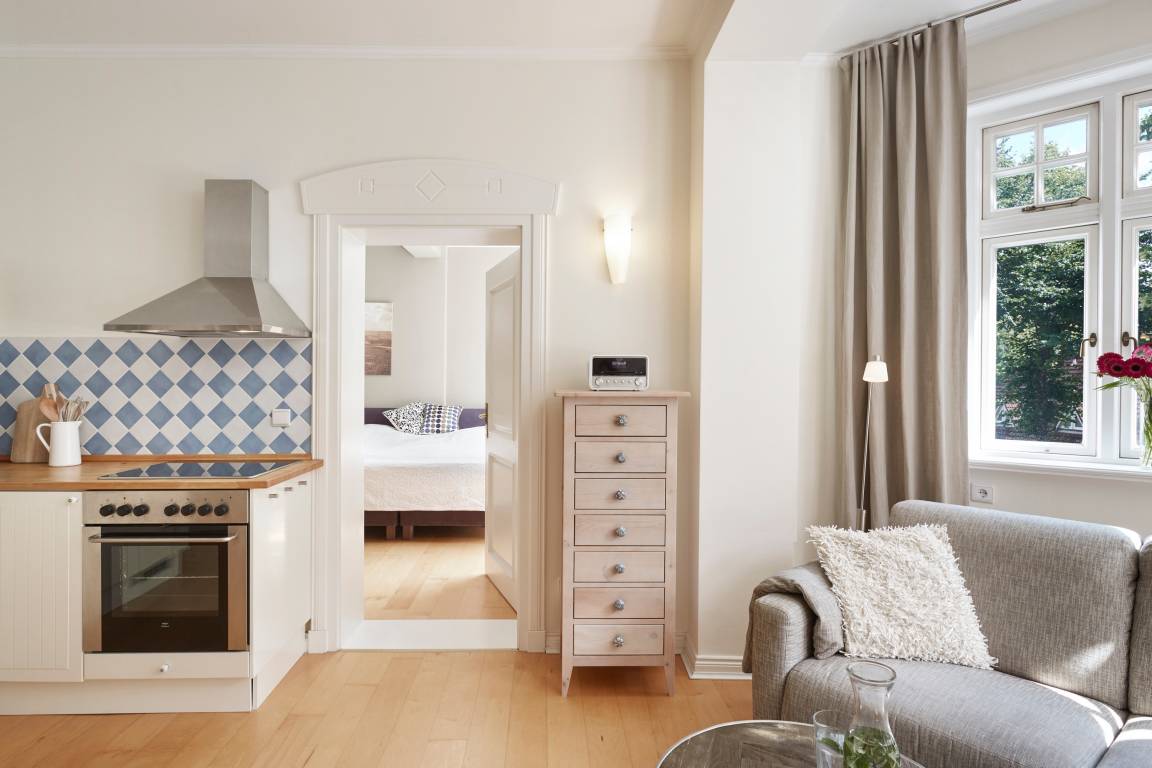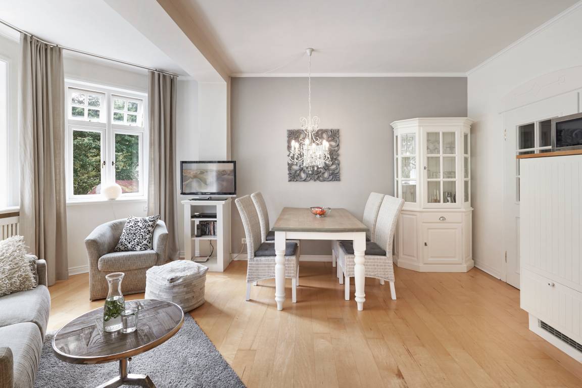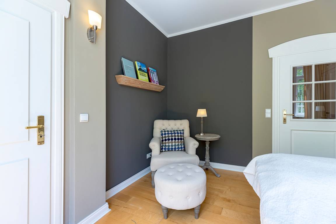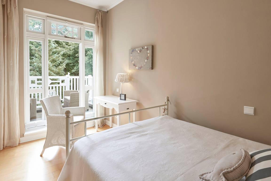 Verbringen Sie die schönste Zeit des Jahres in diesem wunderschönen Schmuckstück. Die historische Bädervilla aus dem Jahre 1910 ist ein traumhaftes Urlaubsdomizil mit bestechender Architektur und wunderbarer Lage. Die Nähe zum Wyker Südstrand und dem Nordseekurpark ist fast einmalig auf Föhr. Im Winter freuen Sie sich über den Blick aufs Meer, im Sommer ins üppige Grün des Nordsee-Kurparks. Die Wohnung 6 liegt im 1. Obergeschoss und bietet Platz für 3 Personen. Sie hat alles, was eine alte Bädervilla verspricht - hohe Decken, ein wunderschönes Erkerzimmer, traumhafte Fenster, Balkon... und Ihre private finnische Sauna lädt zum Entspannen ein. Ein Strandkorb am Strand ist auch für Sie reserviert.