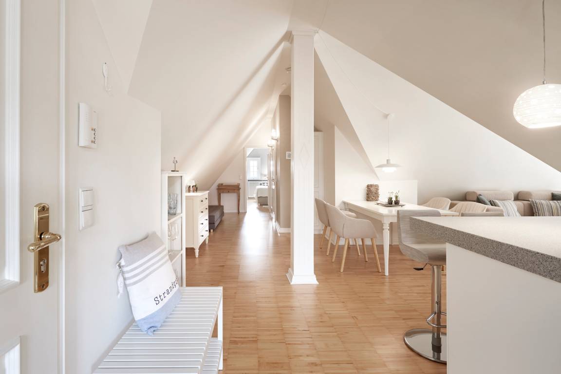 Verbringen Sie die schönste Zeit des Jahres in diesem wunderschönen Schmuckstück aus dem Jahre 1910. Ihr traumhaftes Urlaubsdomizil mit der bestechenden Architektur einer historischen Bädervilla ist ideal und ruhig gelegen - die Nähe zum Wyker Südstrand und dem Nordsee-Kurpark ist einmalig auf Föhr. Die lichtdurchflutete Wohnung 11 (Atelier Südstrand) liegt im 3. Obergeschoss und bietet viel Platz für 2 Personen. Genießen Sie das einzigartige Flair großzügiger Räume unter hohen Schrägen - Ihr Blick geht rundherum ins satte Grün, im Winter bis zum Meer.