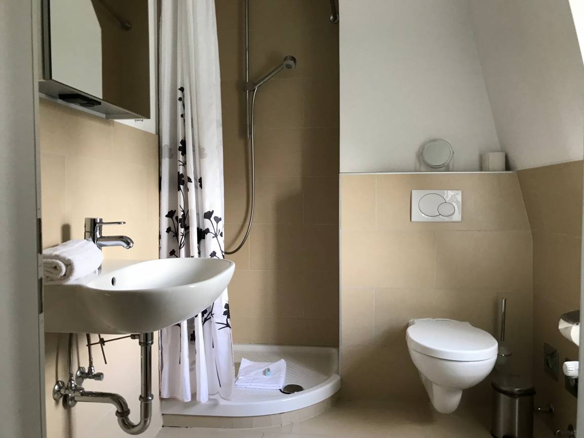„Sehr gute Matratzen im Schrankbett. Unbequeme Kopfkissen 80 x 80, knubbelige Füllung. Komfortabler wären für uns Ältere 40 x 80. Es läuft ausgesprochen viel Wasser in Dusche und Waschbecken, bevor es warm wird. Kosten und Umwelt.“