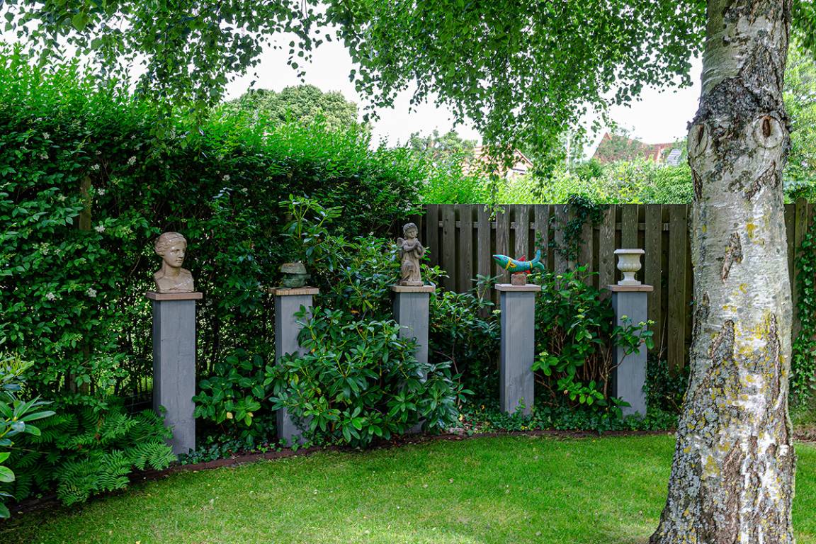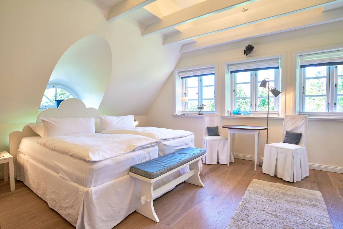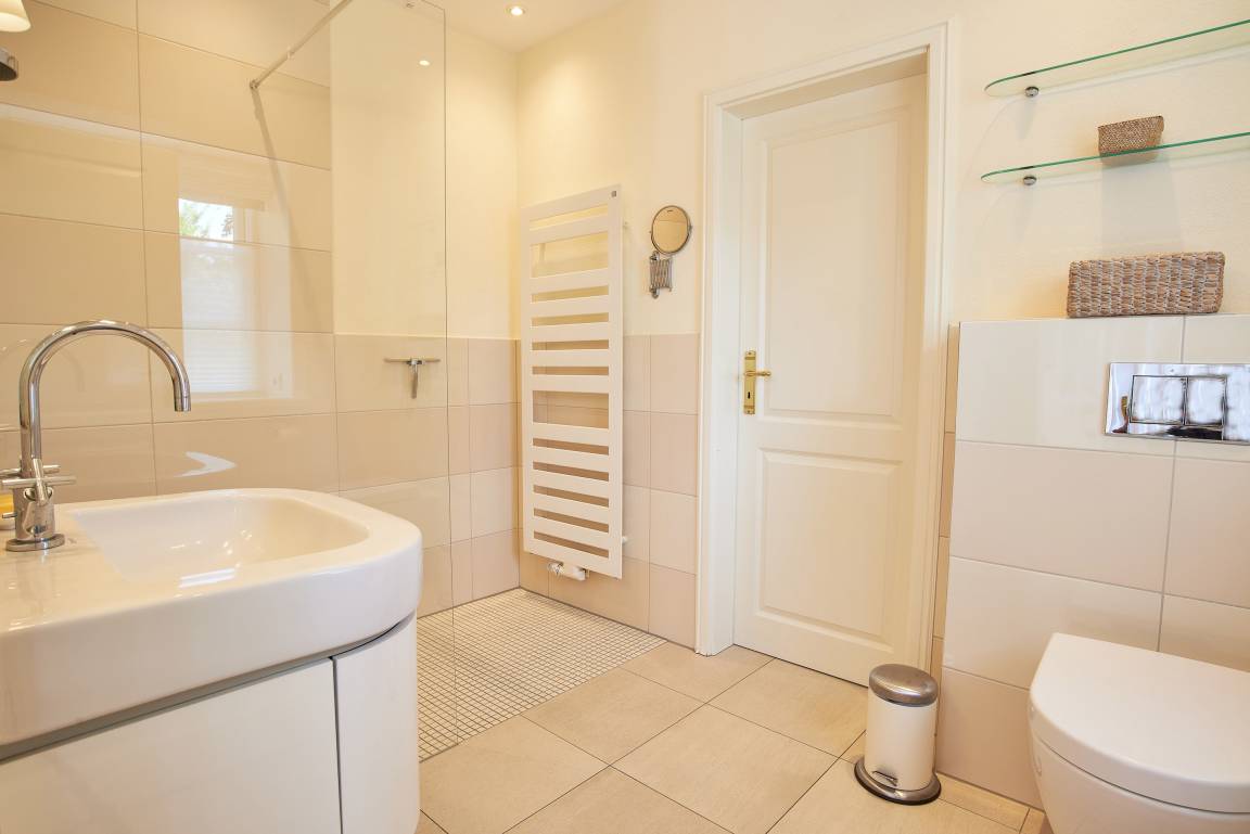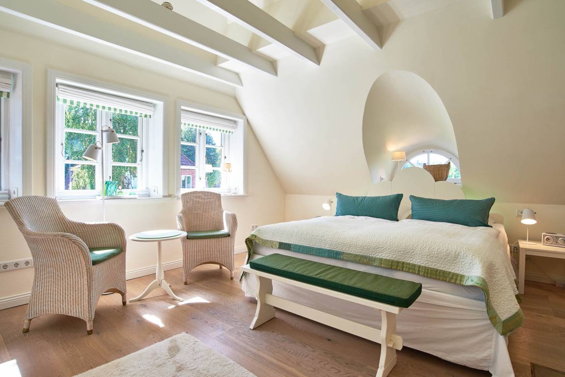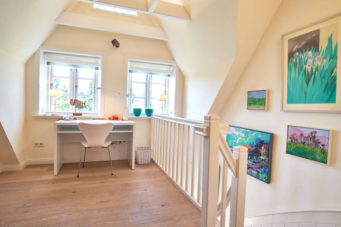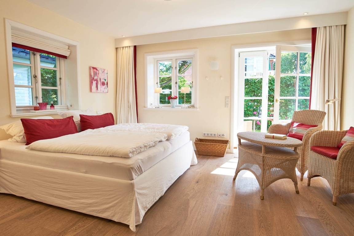 Entdecken Sie das versteckte, märchenhaft im Herzen von Wyk gelegene Einzelhaus unter Reet, das idyllisch und sehr ruhig in zweiter Reihe nur von Gärten umsäumt auf einem ca. 1.000 m² großen, eingewachsenen Grundstück liegt. Der wunderschön angelegte Garten bietet durch innere Friesenwälle viel Privatsphäre und durch Illumination am Abend eine außergewöhnliche Atmosphäre. Die stilvolle Einrichtung der Villa ist ein stimmiger Mix aus modernen Möbeln und antiken Einzelstücken. Genießen Sie die exklusiven Bäder und den Besuch in der geräumigen Gartensauna. Sie werden sich sicher gern an die gemütlichen Abende vor dem historischen Kachelofen im Wohnzimmer erinnern. Auch zwei der geräumigen Schlafräume sind mit je einem Panoramaofen ausgestattet. Nur ein kurzer Fußweg führt Sie zu den Einkaufsmöglichkeiten und der Promenade mit Badestrand, Bars und Cafes.