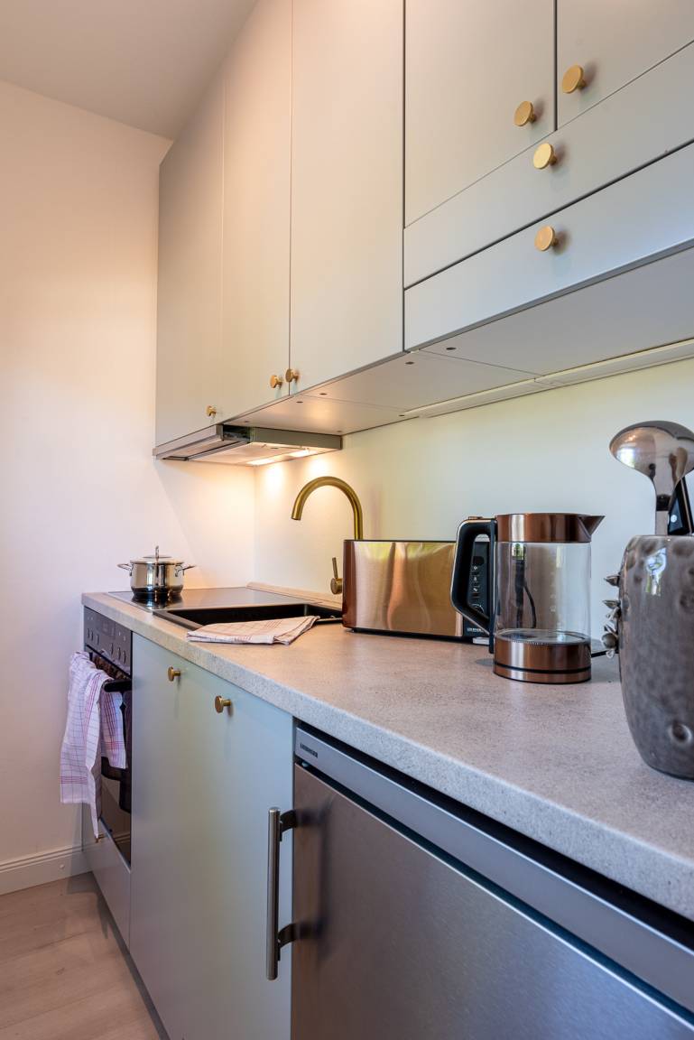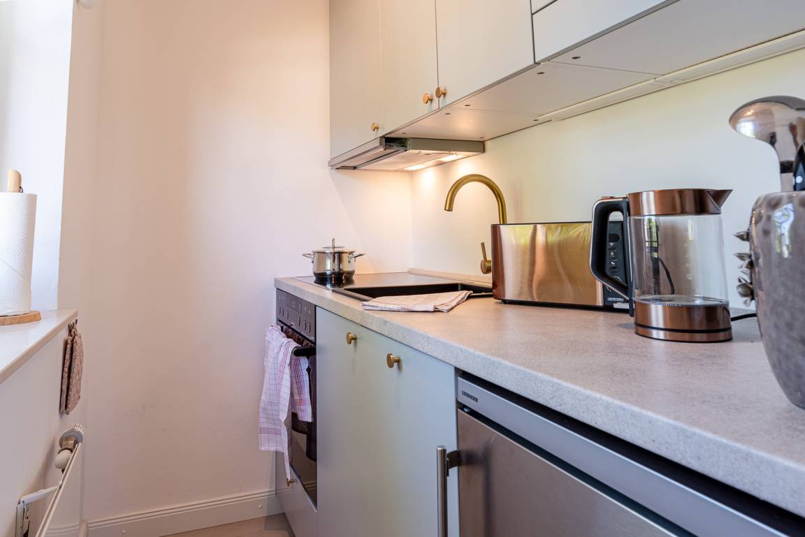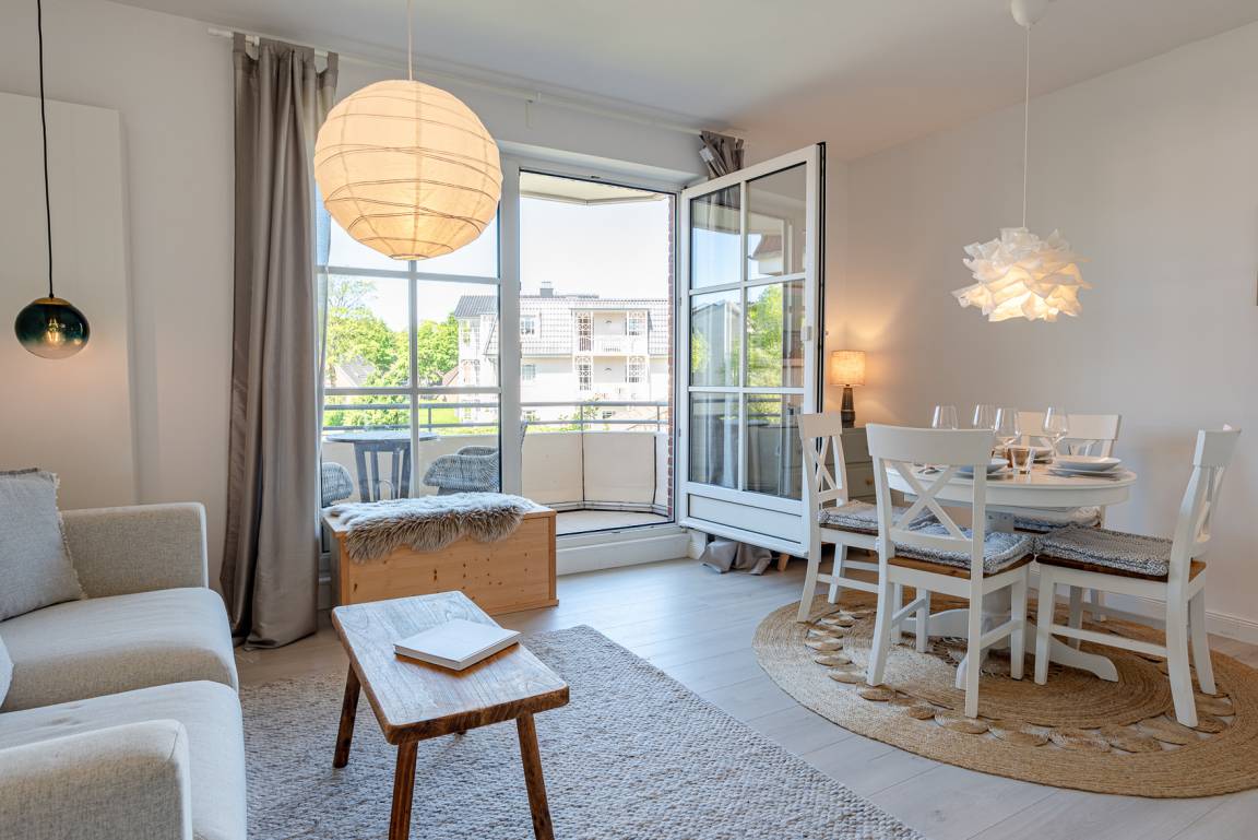 Neben dem lichtdurchfluteten Wohn- und Essbereich mit bequemer Couch, Smart TV und der neuen offenen Küchenzeile erwartet Sie der großzügige Westbalkon mit traumhaften Sonnenuntergängen.