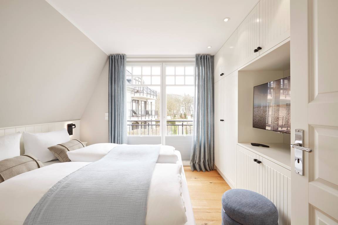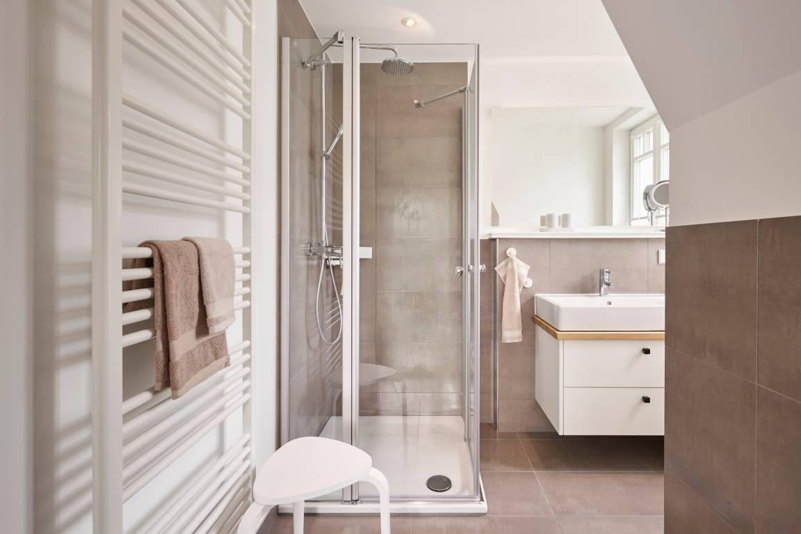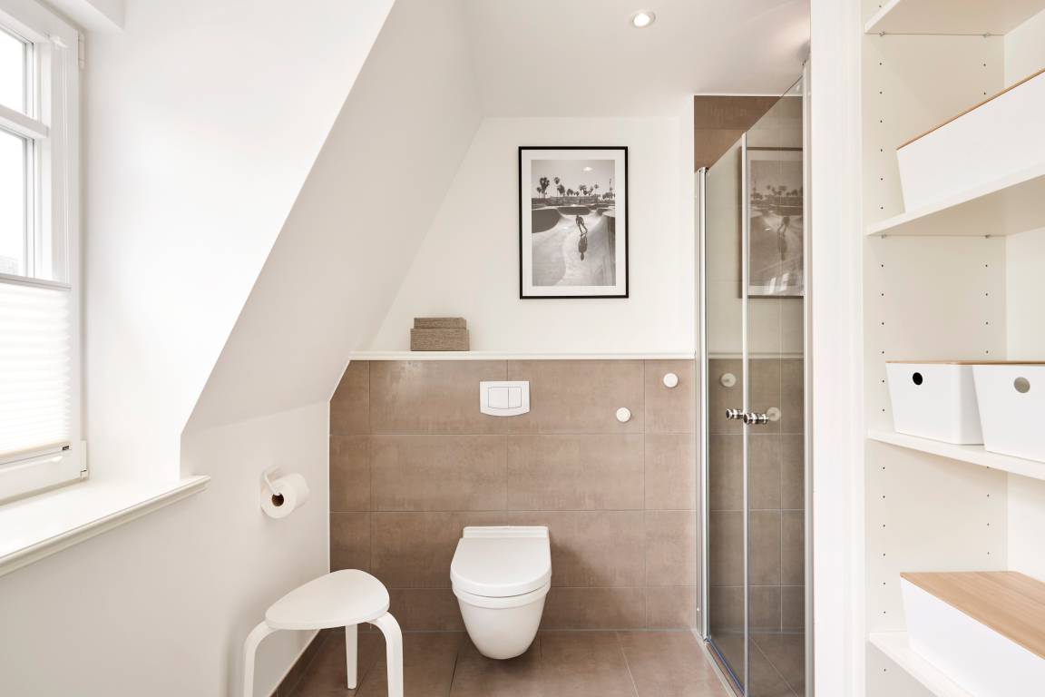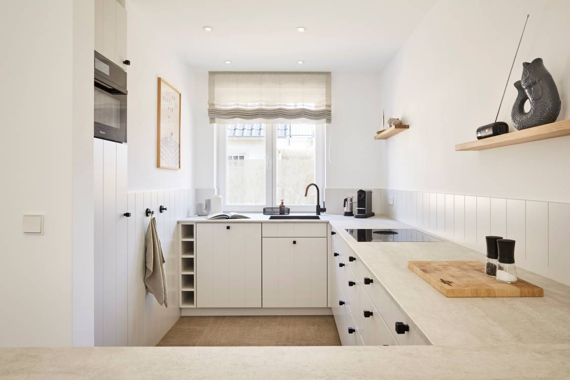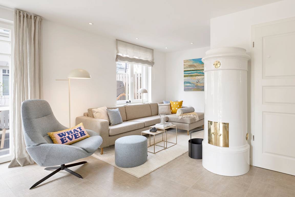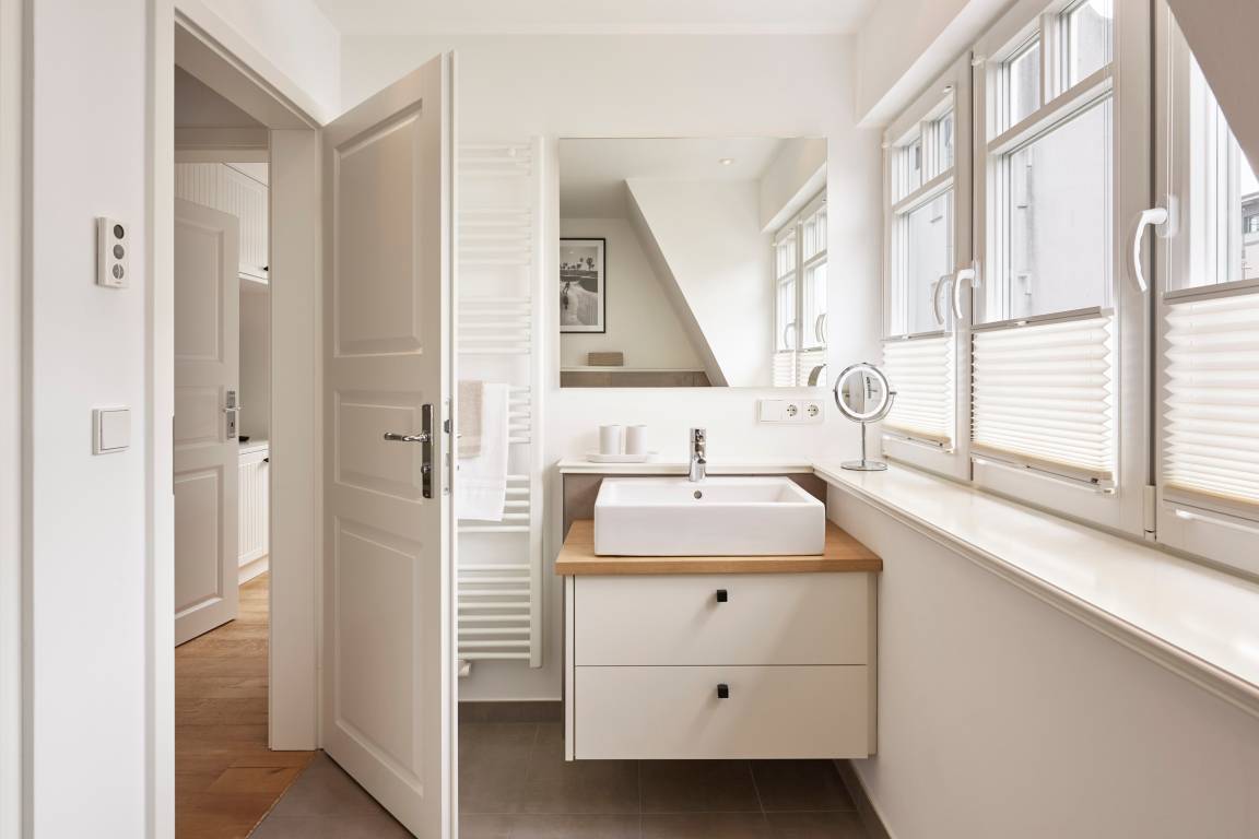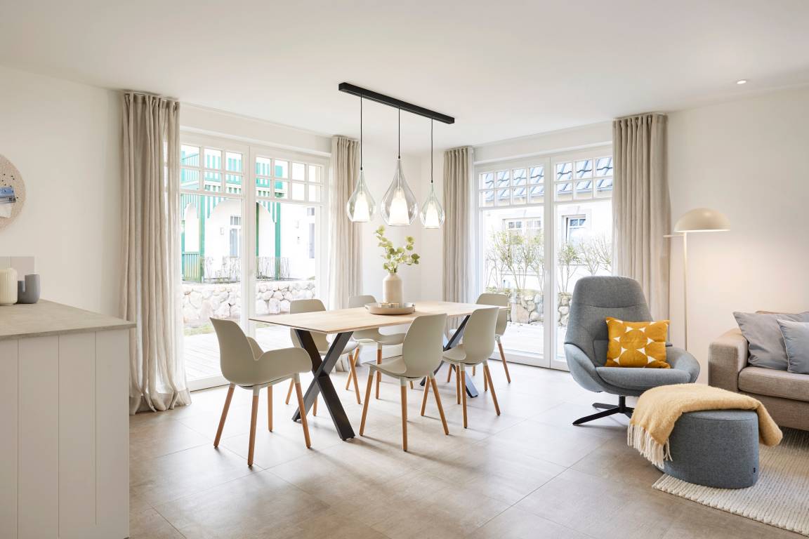 Im Sommer genießen Sie Ihr Frühstück auf der Terrasse und spüren die frische Meeresbrise. Im Obergeschoss befinden sich zwei Schlafzimmer mit Doppelbetten und zwei stilvolle Duschbäder. Aus einem der Schlafzimmer erhaschen Sie sogar einen Blick auf die Nordsee. Beide Schlafzimmer verfügen über kleine Balkone, die perfekt für den ersten Kaffee am Morgen oder ein Glas Wein am Abend sind.