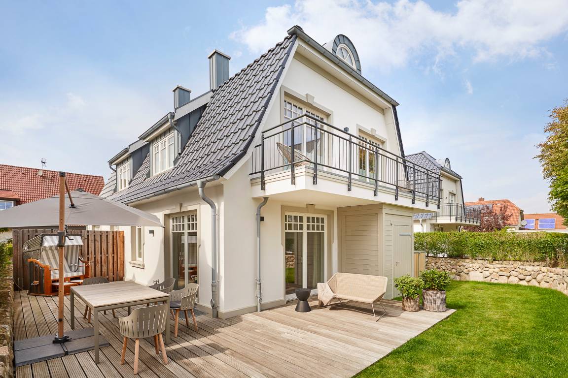 Im Garten erwartet Sie neben einem Strandkorb und gemütlichen Gartenmöbeln eine Möglichkeit E-Bikes auf der Terrasse zu laden. In den Sommermonaten steht ebenfalls ein Strandkorb am Südstrand zur freien Verfügung bereit.