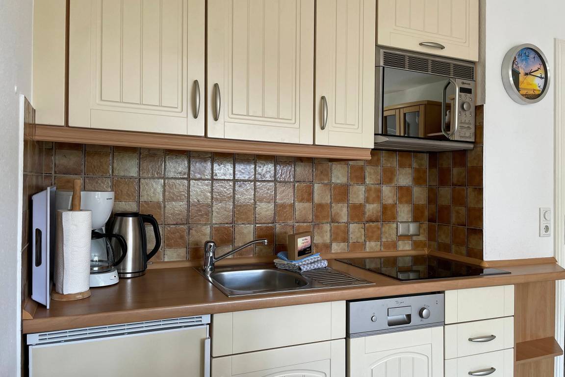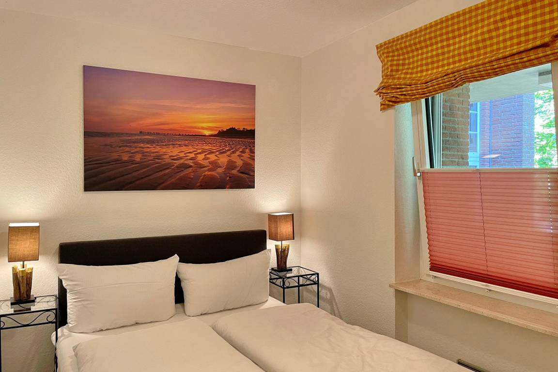 Unsere einladende Wohnung "Watt'n Blick" befindet sich nahe des Wyker Leuchtturms nur einen Katzensprung vom Strand entfernt und eignet sich für 2 Personen hervorragend für einen erholsamen Urlaub. Das Wohnzimmer mit hochwertiger Schlafcouch (170x190cm), integrierter Essecke und gut ausgestatteter Küchenzeile ist mit WLAN, Internet- TV und einer Stereoanlage sowie einer kleinen Auswahl an Büchern ausgestattet. Von hier aus gelangen Sie auf den Balkon mit einer automatisch ausfahrbaren Markise. Das kleine Duschbad mit Handtuchheizung ist funktional eingerichtet und im separaten Schlafzimmer mit Doppelbett (140 x 200 cm) können Sie ruhige Nächte erleben. Waschmaschine und Trockner stehen zur gemeinschaftlichen Nutzung gegen eine geringe Gebühr bereit und zur Wohnung gehört ein eigener PKW-Stellplatz.