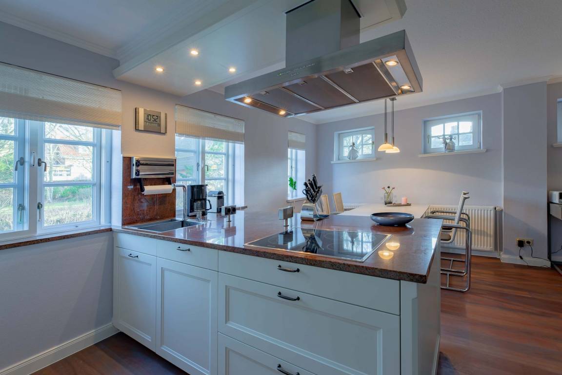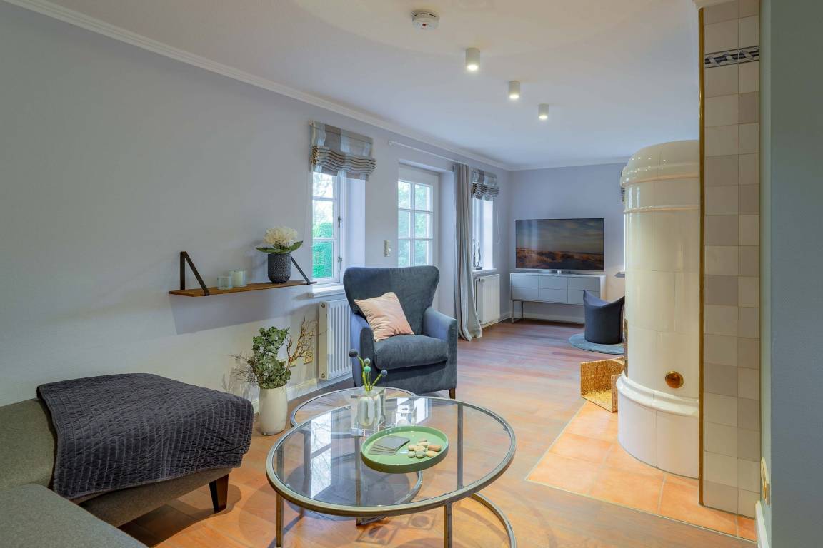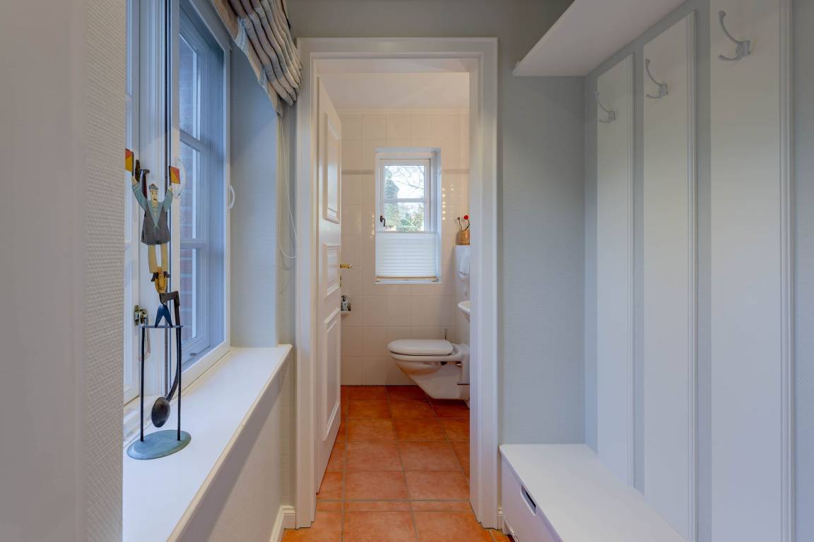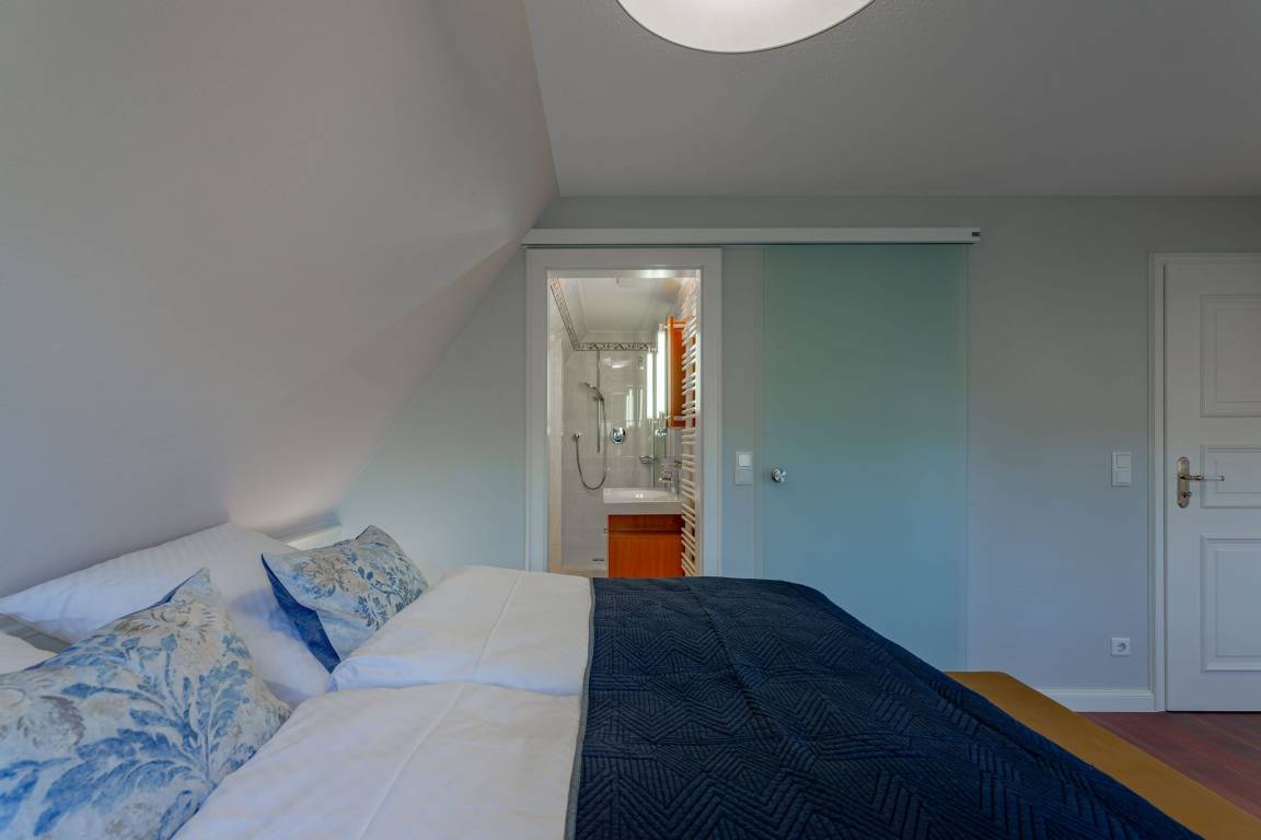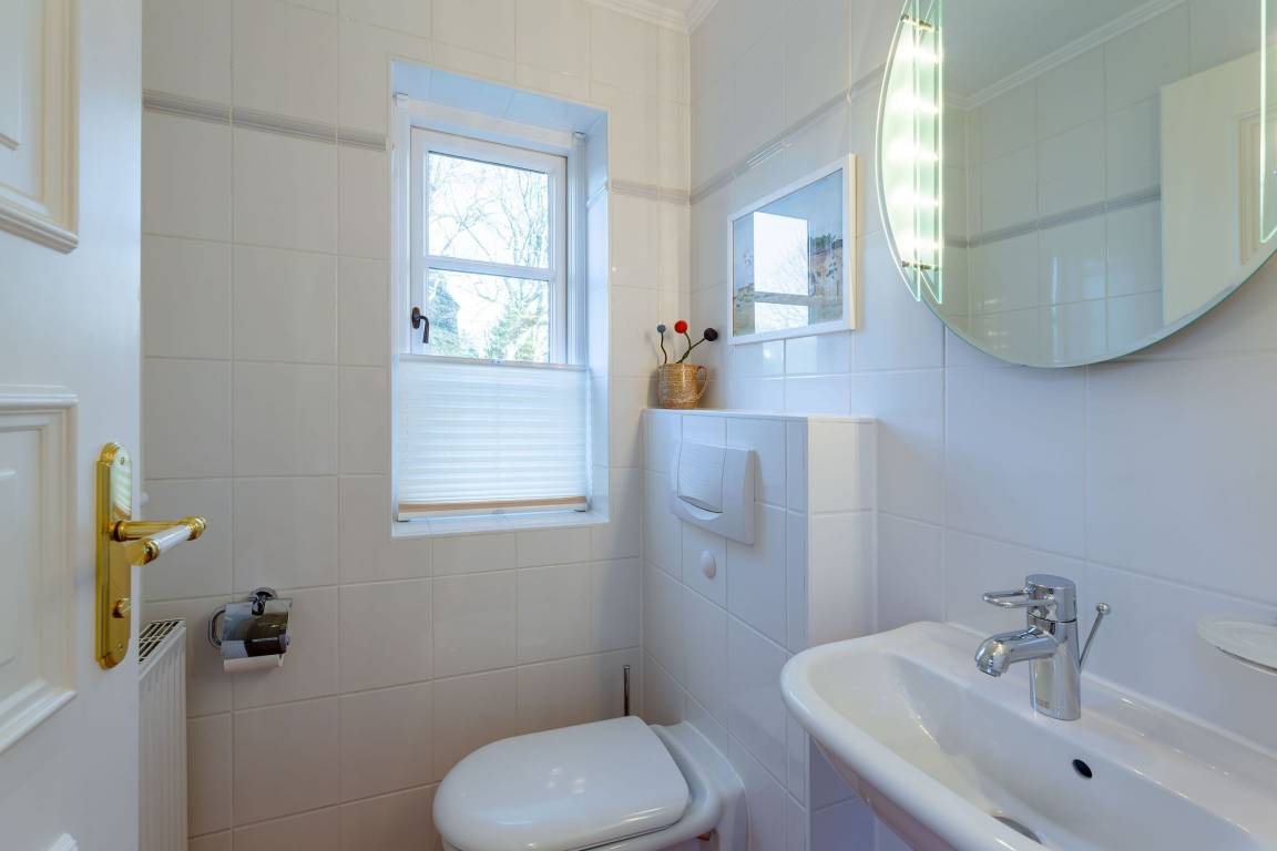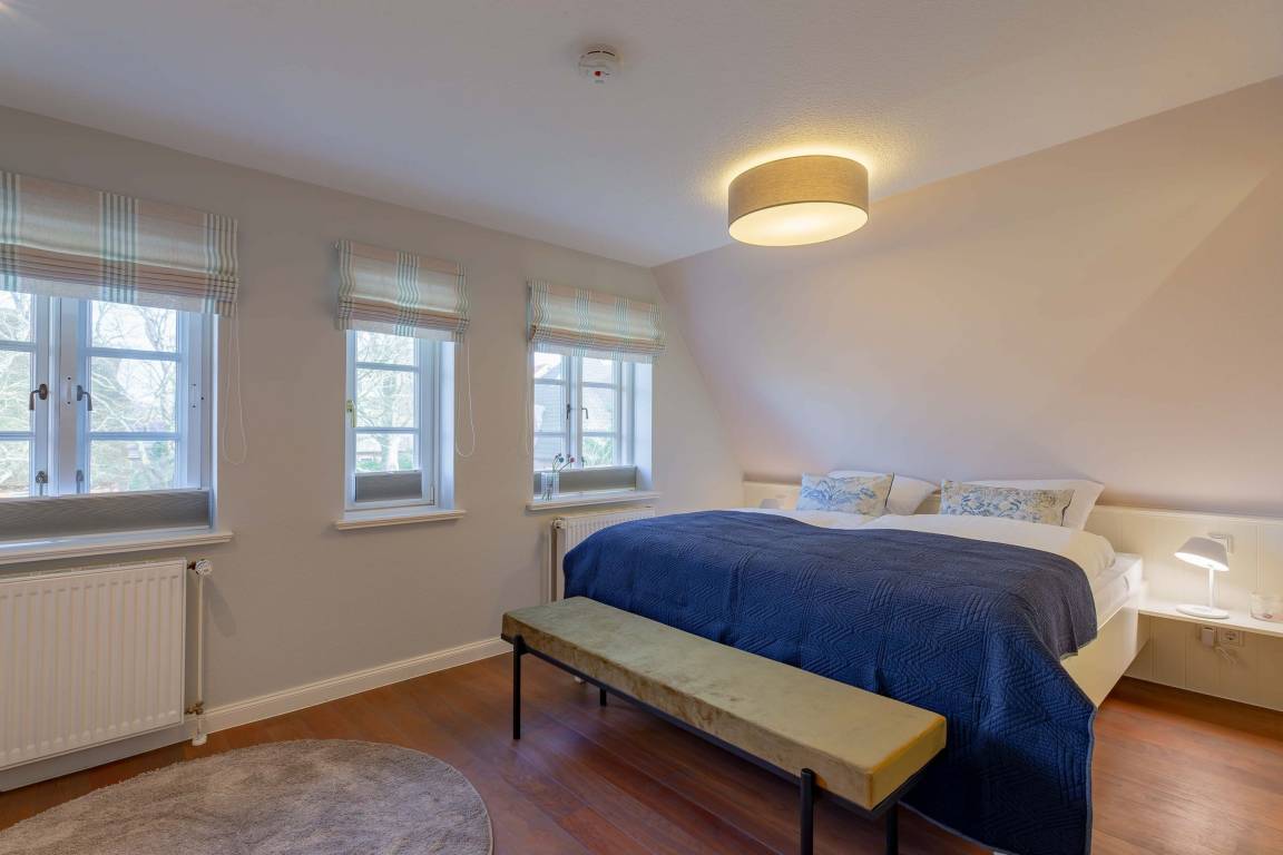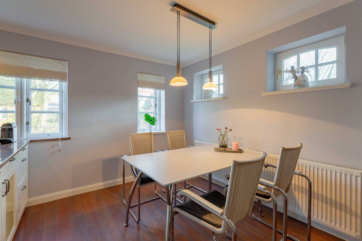 Wir begrüßen Sie im Haus Edda, unter dem Reetdach eines Drei-Parteien-Hauses im friesischen Baustil. Im Haus Edda stehen Ihnen 90 qm sowie ein separater Eingang zur Verfügung. Der kleine feine Garten grenzt direkt an den alten Kurpark in Wyk. Wenn Sie diesen durchqueren, gelangen Sie in wenigen Minuten zur Strandpromenade und haben von dort den freien Blick auf die Nordsee und die Halligen. Genießen Sie die Sonnenstunden im Strandkorb auf der Terrasse. Ein weiterer Strandkorb steht am Strand für Sie bereit. Für gemütliche Abende im Haus sorgt der schöne Mylin-Kachelofen – an windigen und kühlen Herbst- und Winterabenden genau das Richtige, um zu entspannen. Die perfekt ausgestattete Küche mit großer Kochinsel macht Lust auf gemeinsames Kochen. Es schließt sich der Essbereich an, der in den Wohnraum mit Leseecke übergeht. Ein Gäste-WC komplettiert das Erdgeschoss. Die beiden Schlafräume mit jeweils einem angrenzenden Bad befinden sich im Obergeschoss.