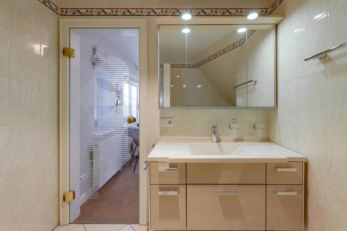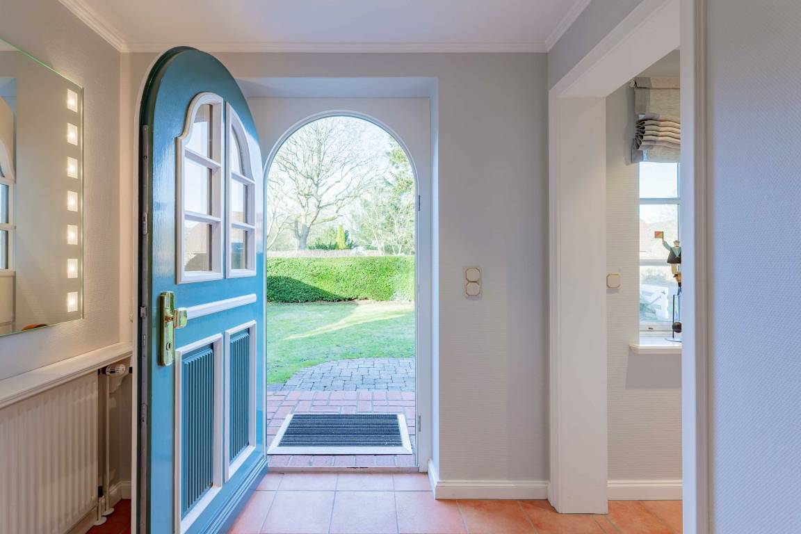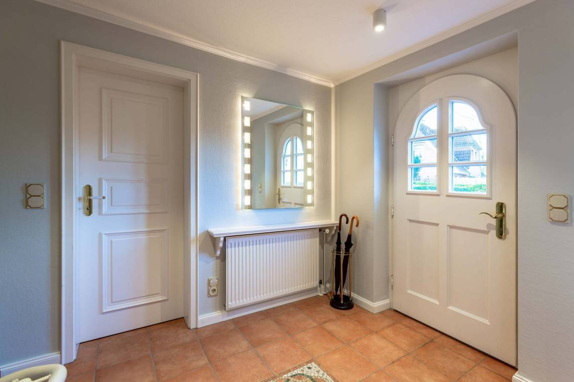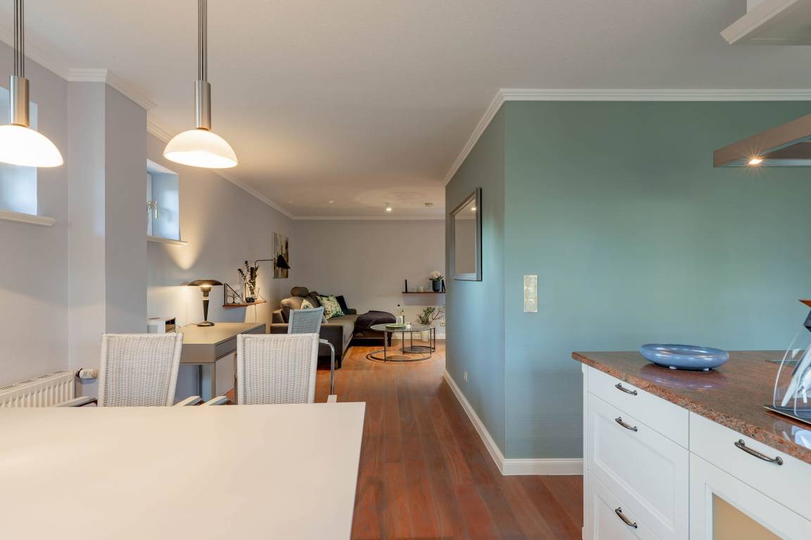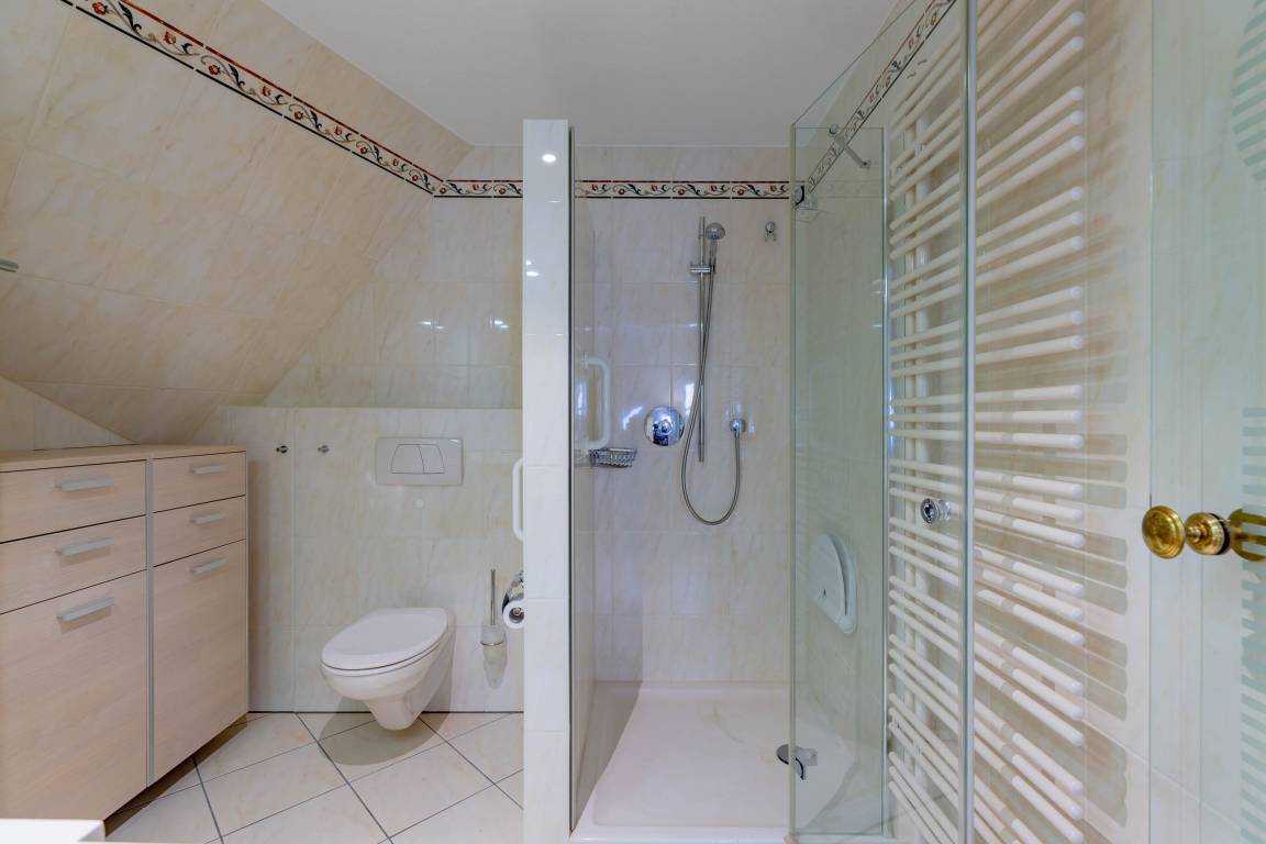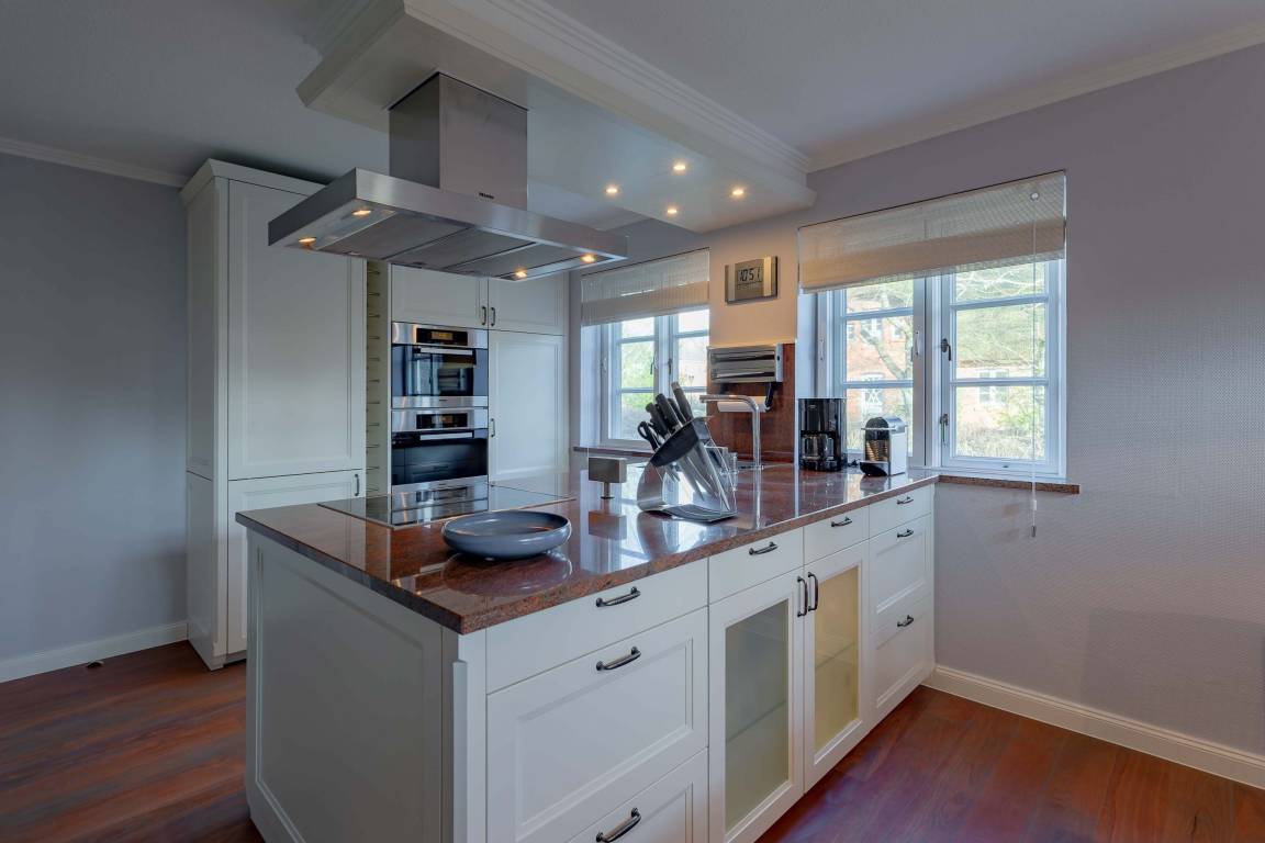Wir begrüßen Sie im Haus Edda, unter dem Reetdach eines Drei-Parteien-Hauses im friesischen Baustil. Im Haus Edda stehen Ihnen 90 qm sowie ein separater Eingang zur Verfügung. Der kleine feine Garten grenzt direkt an den alten Kurpark in Wyk. Wenn Sie diesen durchqueren, gelangen Sie in wenigen Minuten zur Strandpromenade und haben von dort den freien Blick auf die Nordsee und die Halligen. Genießen Sie die Sonnenstunden im Strandkorb auf der Terrasse. Ein weiterer Strandkorb steht am Strand für Sie bereit. Für gemütliche Abende im Haus sorgt der schöne Mylin-Kachelofen – an windigen und kühlen Herbst- und Winterabenden genau das Richtige, um zu entspannen. Die perfekt ausgestattete Küche mit großer Kochinsel macht Lust auf gemeinsames Kochen. Es schließt sich der Essbereich an, der in den Wohnraum mit Leseecke übergeht. Ein Gäste-WC komplettiert das Erdgeschoss. Die beiden Schlafräume mit jeweils einem angrenzenden Bad befinden sich im Obergeschoss.