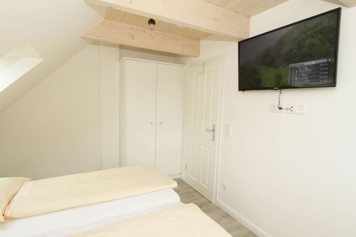 Die Wohnung befindet sich im Obergeschoß und verfügt über einen Balkon. Im großzügigen Wohnbereich gibt es eine voll ausgestattete Küche, eine gemütliche Couch, ein Duschbad und 2 Schlafzimmer mit TV. Zur Wohnung gehören Fahrradunterstellmöglichkeiten und ein überdachter PKW-Stellplatz.