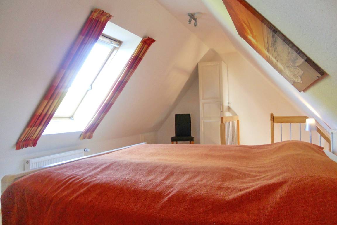 Im Herzen von Wyk gelegen, befindet sich in ruhiger Lage unser Domizil Rugstieg 8 mit seinen 4 Ferienwohnungen für 2 bis 5 Personen. Die Wohnungen des Hauses sind allergiker- und kinderfreundlich eingerichtet. Unsere Wohnung Rugstieg 8/4 erstreckt sich über das erste und zweite Obergeschoß und bietet bis zu 4 Personen genügend Platz für herrliche Urlaubstage. Das gemütlich eingerichtete Wohnzimmer ist liebevoll gestaltet und technisch gut ausgestattet mit WLAN, Telefon, Stereoanlage, Flachbild-TV und DVD-Player. Hier befindet sich auch der Essplatz neben der Treppe, die hinaus zum offenen Dachgeschoss-Schlafzimmer mit Doppelbett führt. Auf der ersten Etage befindet sich weiterhin ein Schlafzimmer mit zwei Einzelbetten, das Bad mit Dusche und Föhn sowie die separate Küche mit Ceranfeld-Herd und Backofen, Geschirrspüler, Mikrowelle und vielem mehr. Probieren sie doch mal friesische Gerichte in Ihrem Urlaub aus. In der Wyker Innenstadt finden Sie freundliche Buchhändler, die schöne friesische Kochbücher anbieten. Im Untergeschoss des Hauses befindet sich eine Sauna mit einigen Fitnessgeräten sowie Waschmaschine und Trockner zur gemeinsamen kostenfreien Nutzung. Das gepflegte Haus mit dem idyllischen Garten liegt wenige Meter vom Wyker Stadtwäldchen mit dem Abenteuerspielplatz Löwenhöhle entfernt und lädt somit Jung und Alt zum Spazierengehen und Verweilen ein. In ca. 10 Gehminuten erreichen Sie den Strand und das Meer sowie die Fußgängerzone mit zahlreichen Cafés, kleinen Geschäften und Restaurants. Schauen Sie sich die Wohnungen an und überzeugen Sie sich selbst! Wir freuen uns auf Ihren Anruf.