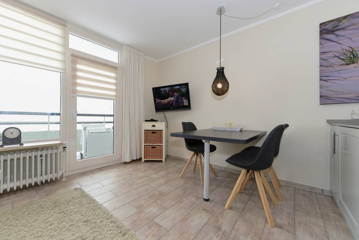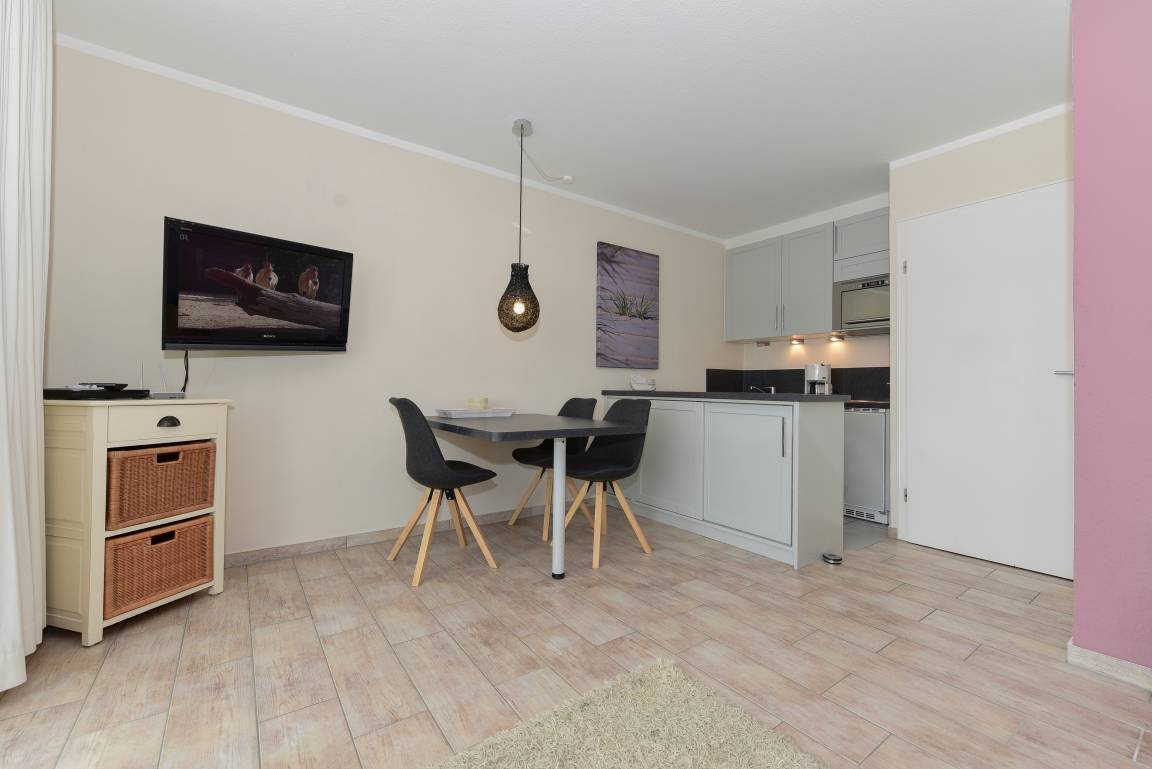 „Die Wohnung ist gut für 2 Personen geeignet. Zu viert wird es eng. Und im Wohnraum klappert bei Wind gelegentlich der Dunstabzug, was den Schlaf auf dem Schlafsofa stören kann. Die Einrichtung ist schön und die Küche gut ausgestattet.“