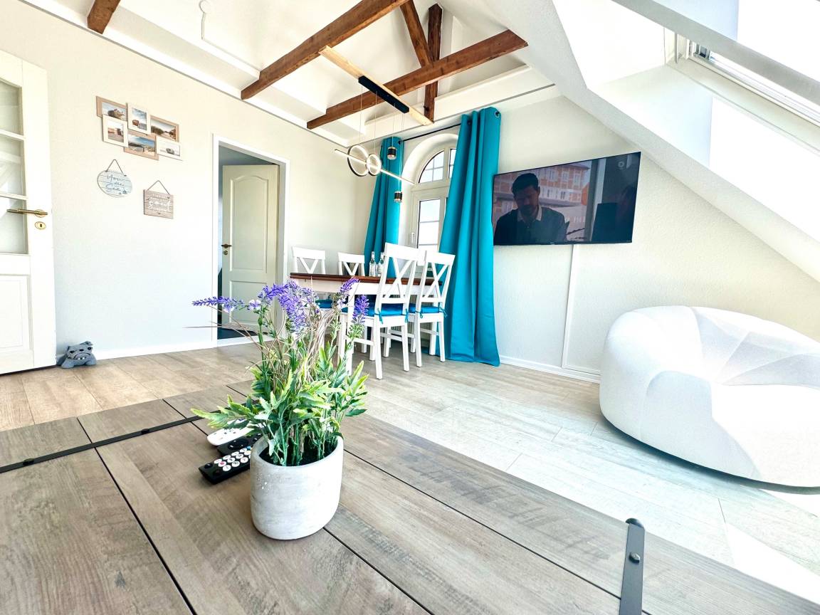 Auf ca. 50 m² ist hier Platz für 2-3 Erwachsene + Kind im 2.Obergeschoss des Haus Meerblick, direkt am Sandwall an der Wyker Promenade.