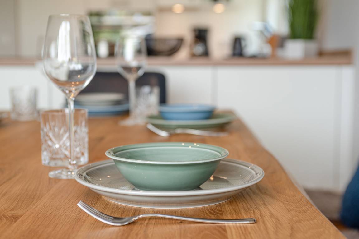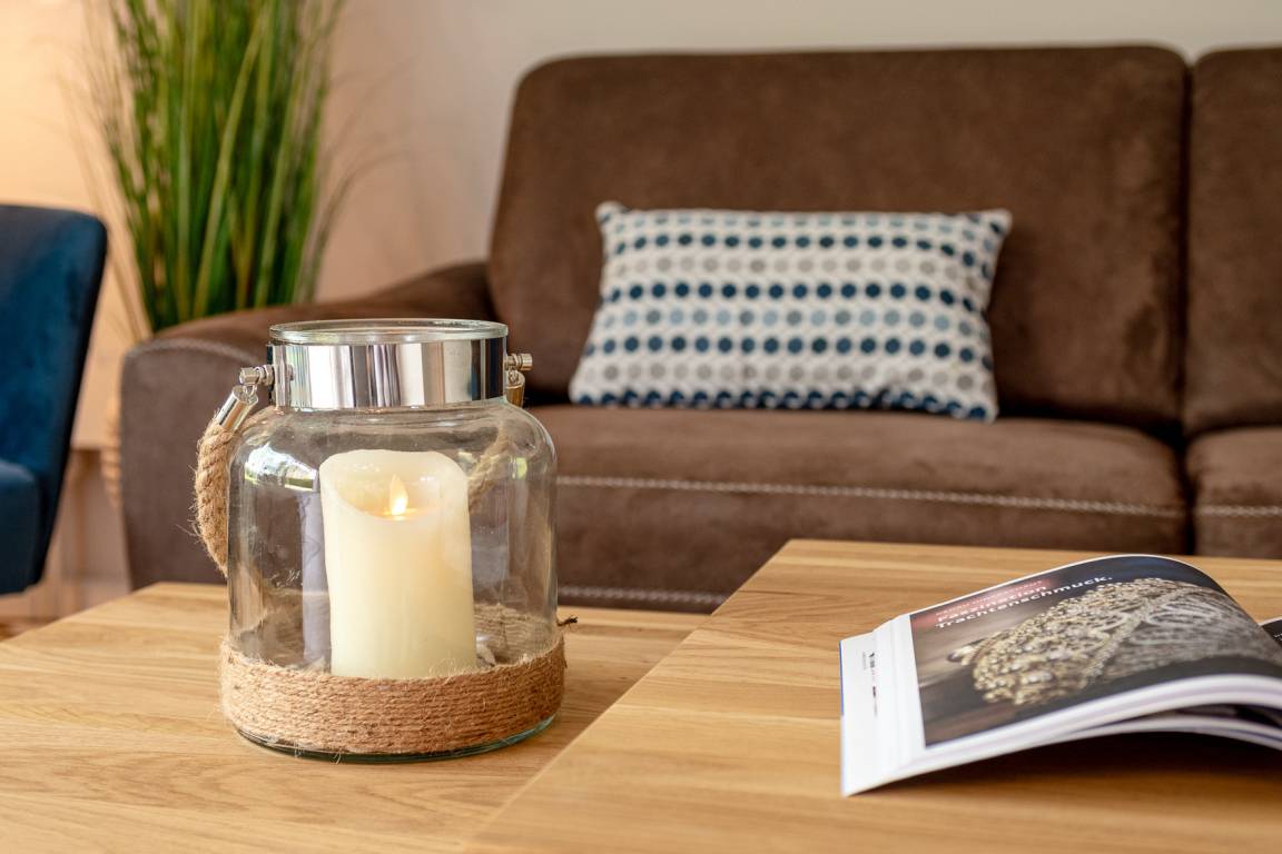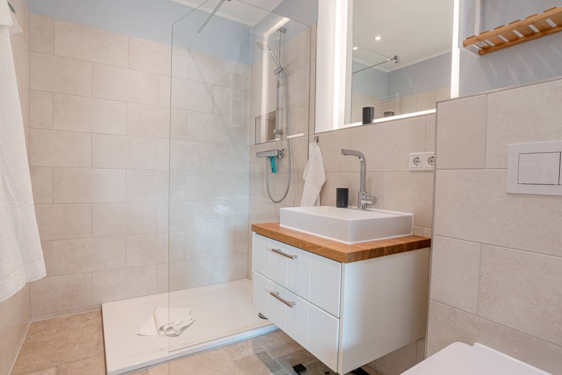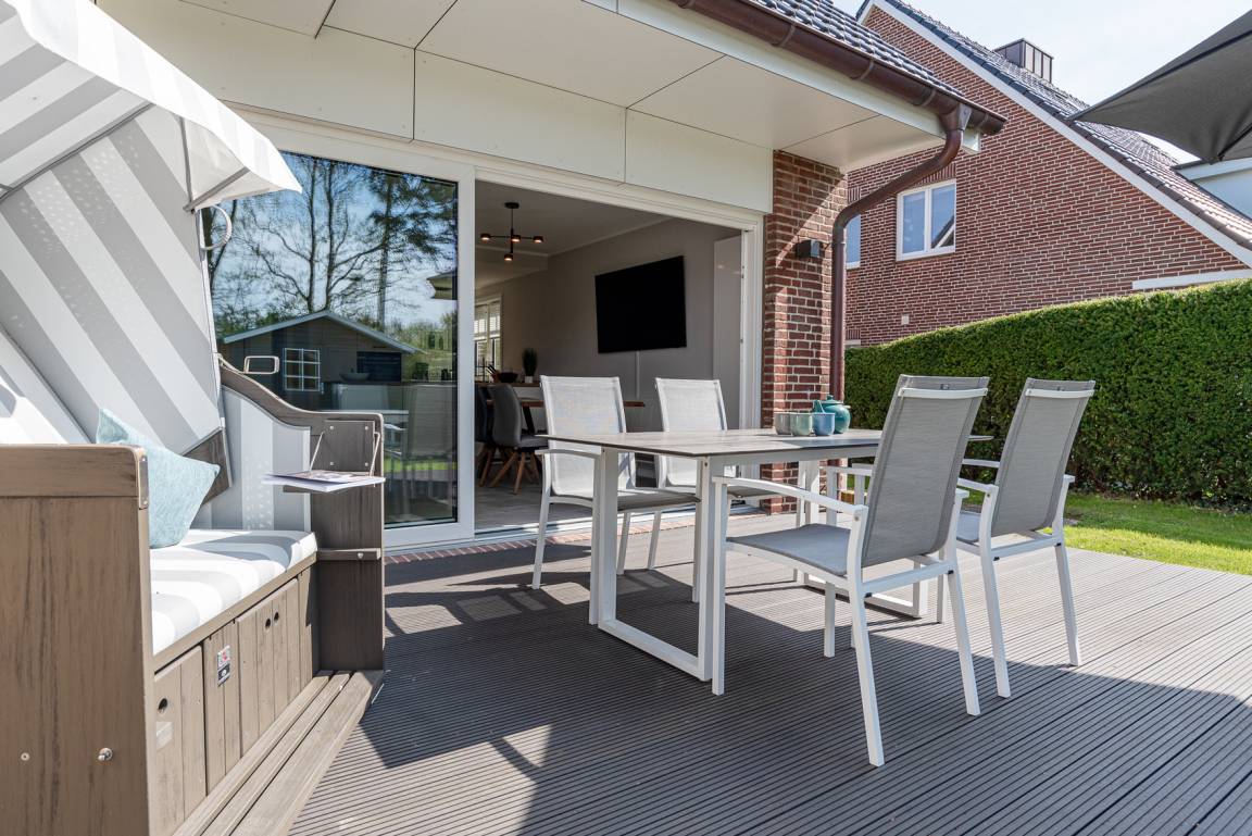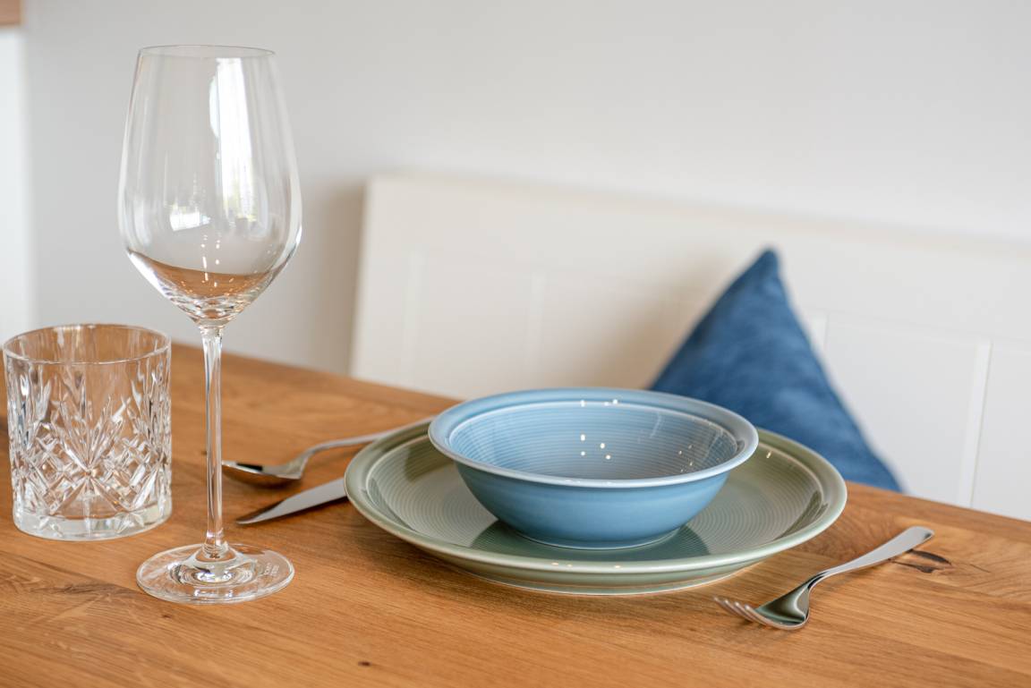 Im Erdgeschoß befindet sich der Wohnbereich mit einer gemütlichen Couch, der Essbereich und eine vollausgestattete Küche. Auf der Terrasse mit angrenzendem Gartenanteil finden Sie Gartenmöbel und einen Strandkorb (während der Saison). Außerdem gibt es ein Schlafzimmer mit Doppelbett und ein Duschbad. Im Obergeschoß gibt es zwei weitere Schlafzimmer mit Doppelbett (davon 1 x mit TV) und ein zweites Bad. Im DG befindet sich ein Platz, der über LAN-Kabel Telearbeit ermöglicht. Im Keller stehen Ihnen neben genügend Abstellfläche Waschmaschine und Trockner zur kostenfreien Nutzung zur Verfügung. Zur Wohnung gehört außerdem ein PKW-Stellplatz vor dem Haus. Ihre Fahrräder können Sie im Gartenschuppen abstellen.