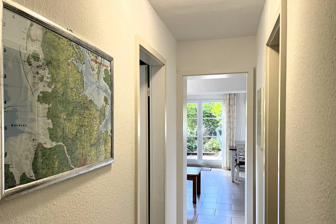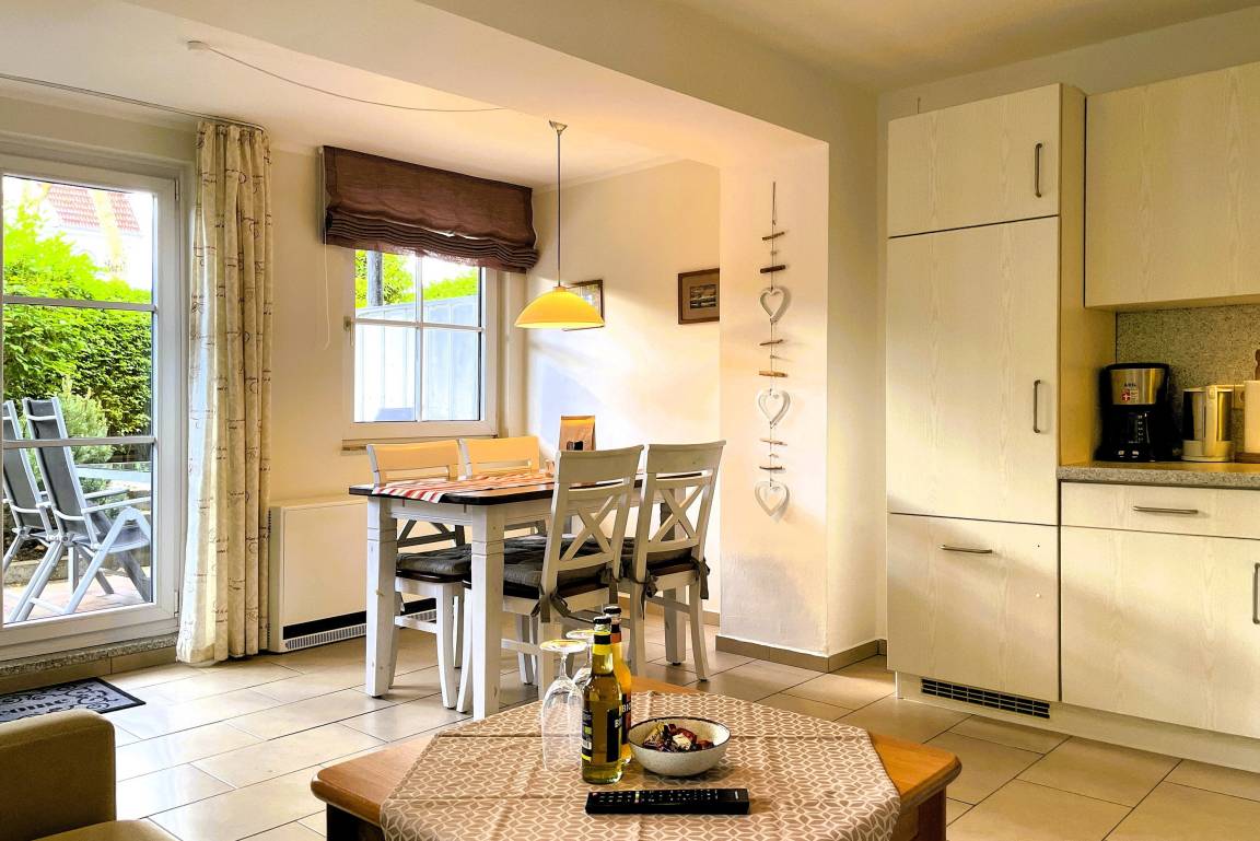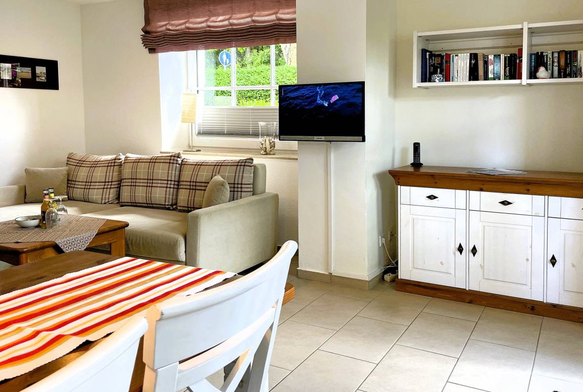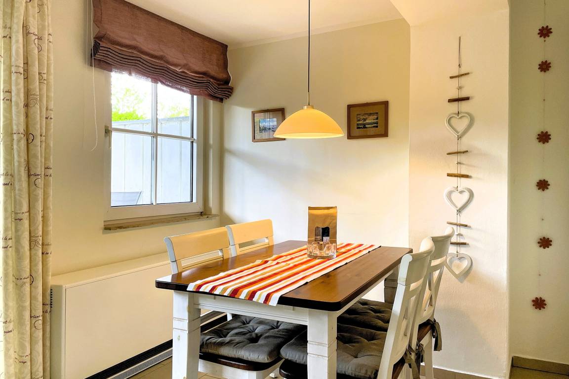 Von der in Hochparterre befindlichen Eingangstüre gehen Sie einige Stufen hinab ins Erdgeschoss, wo sich die Unterkunft Blanker Hans befindet. Die modern und liebevoll eingerichtete Ferienwohnung ist für bis zu drei Personen geeignet und verspricht traumhafte Urlaubstage. Der offene Wohnbereich mit einladender hochwertiger Schlafcouch (150 x 200 cm), Flachbild TV, DVD-Player, WLAN, Telefon und Stereoanlage und integrierter vollausgestatteter Küche mit Backofen, Mikrowelle und Geschirrspüler sowie großzügigem Essbereich ist hell und freundlich. Von hier aus gelangen Sie auf die kleine, gepflegte Terrasse, die ruhig und geschützt liegt. Das Schlafzimmer verfügt über zwei Einzelbetten (80 x200 cm), wo Sie morgens ausgeruht aufwachen können. Das Bad ist hell und verfügt über eine Dusche mit Schiebetür und Handtuchheizung. Insgesamt ist dies ein Domizil mit Wohlfühlcharakter. Egal ob Sie einen ruhigen oder aktiven Urlaub planen, die Wohnung Blanker Hans läßt durch Ihre Lage und die Ausstattung keine Wünsche offen!