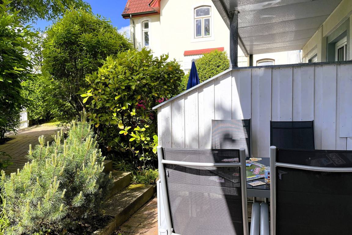 In einer weißen Villa befindet sich in der Badestraße in Wyk unsere Wohnung Blanker Hans. Eine gemeinschfaftlich nutzbare Sauna steht den Gästen der Villa zur Verfügung.