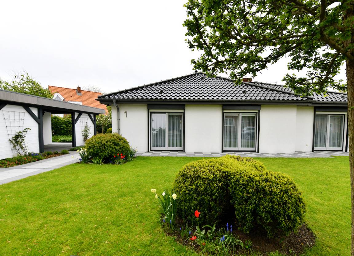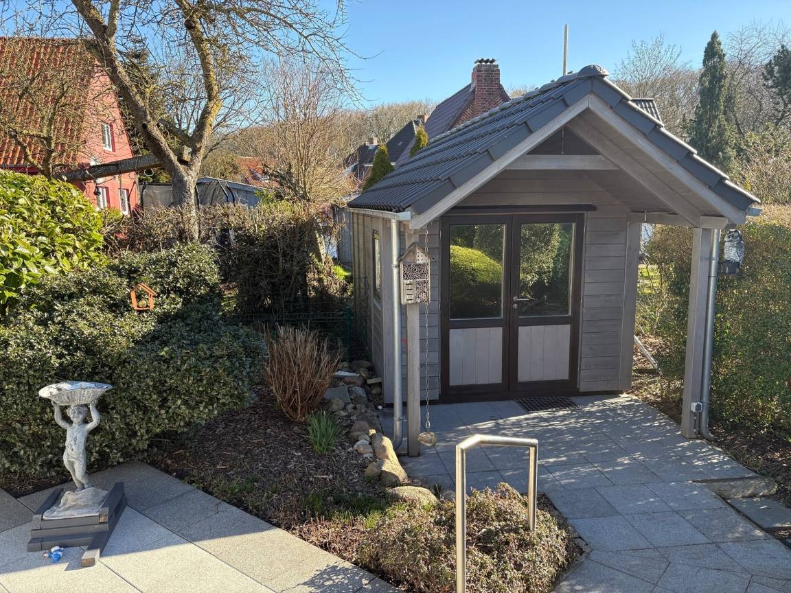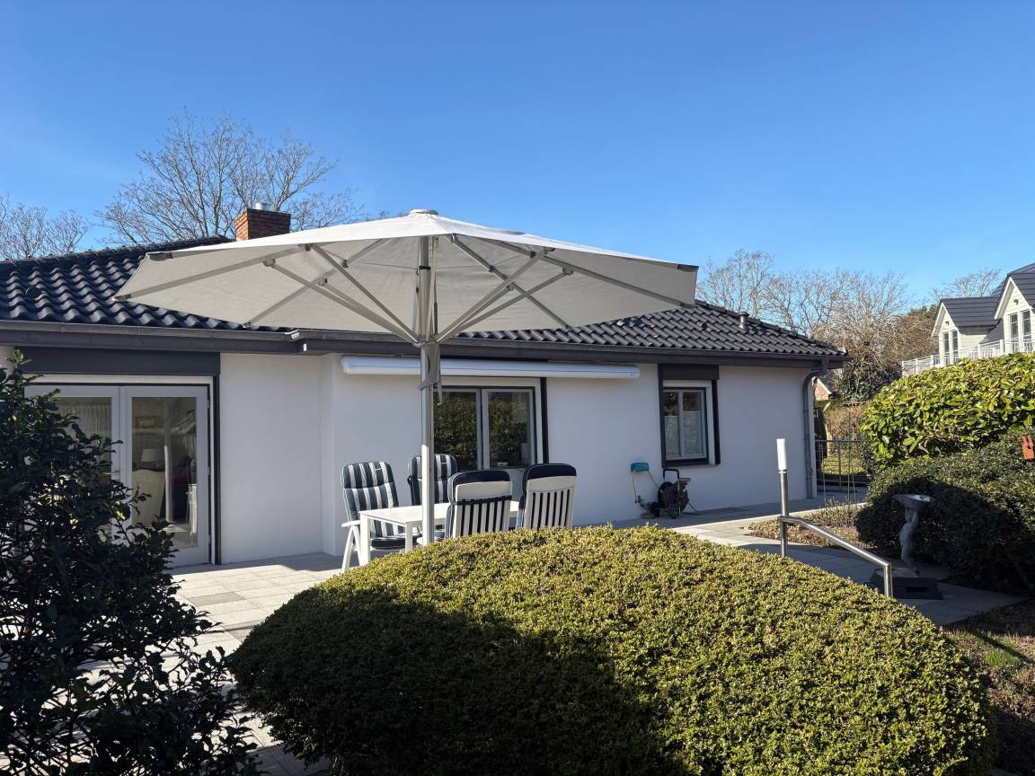 Der großzügig geschnittene Bungalow bitte Platz für 2 bis 4 Personen. Bodentiefe Fenster bieten viel Helligkeit und einen schönen Blick in den gepflegten Garten. Ruhige Lage, jedoch sind Zentrum und Strand in wenigen Minuten zu Fuß erreichbar. Ein Carport ist auf dem Grundstück, Ihre Fahrräder können im Gartenhaus untergestellt werden.