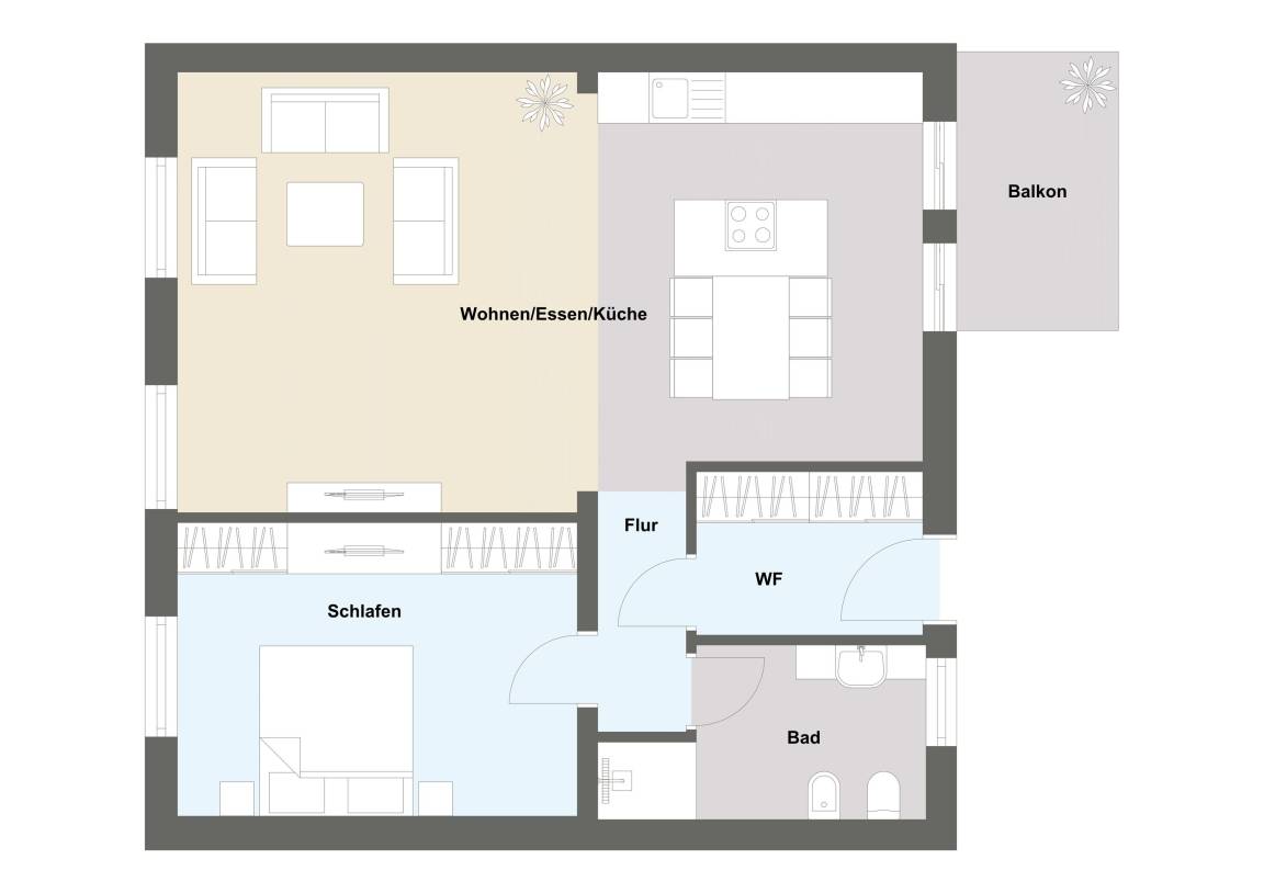 Nun fehlen nur noch ein paar Kleinigkeiten: Vorhänge, Dekorationen, Balkonmöbel und dann kann es losgehen.
