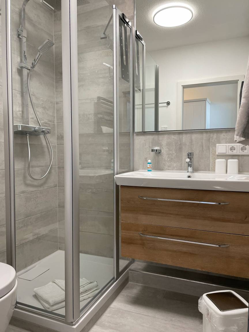 Ein stilvolles Duschbad rundet das Wohlfühlambiente ab.