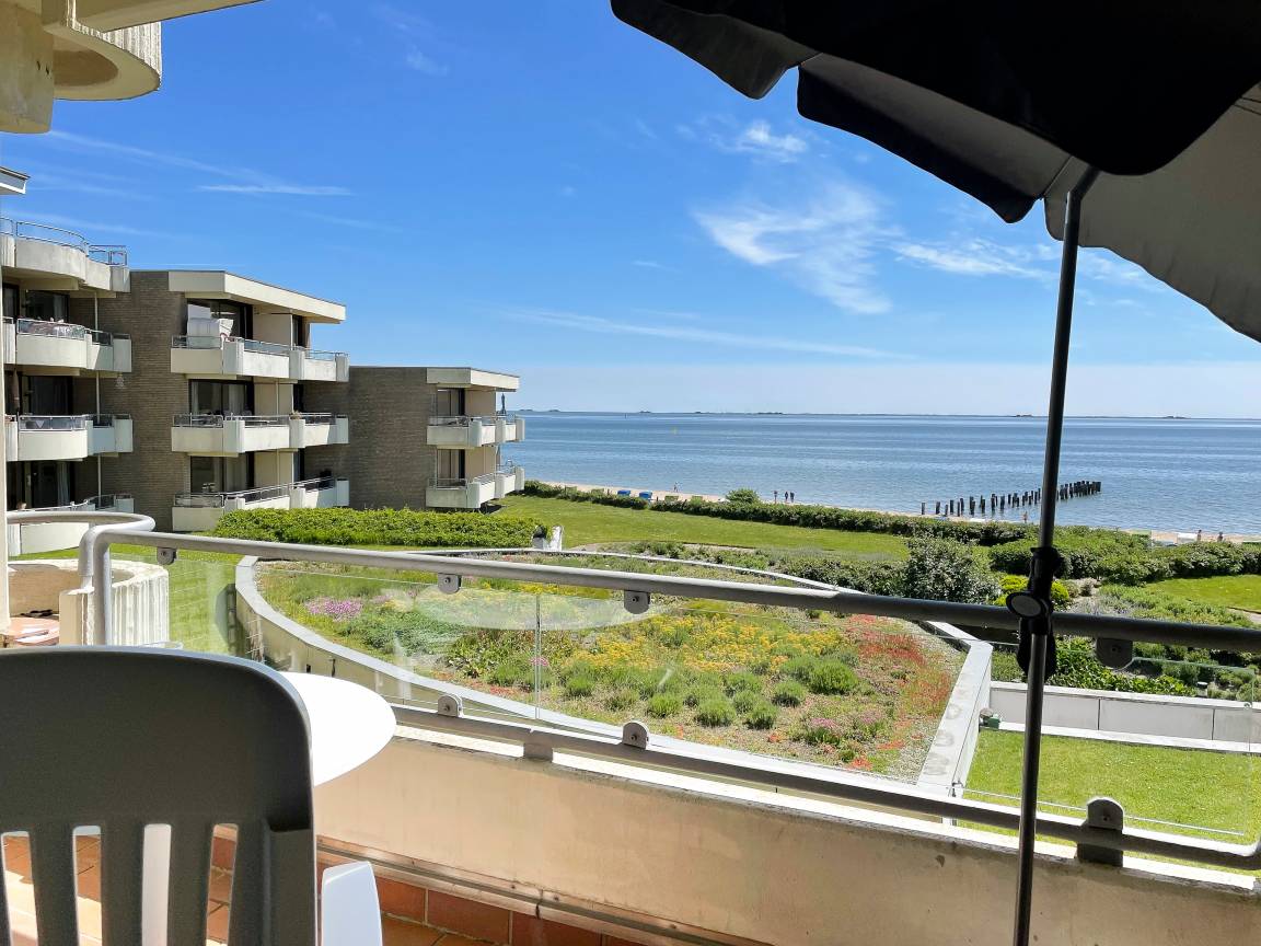 Genießen Sie den unverbauten Panoramablick auf die Nordsee und die Halligwelt - ob durch das große Fenster oder vom Balkon aus.