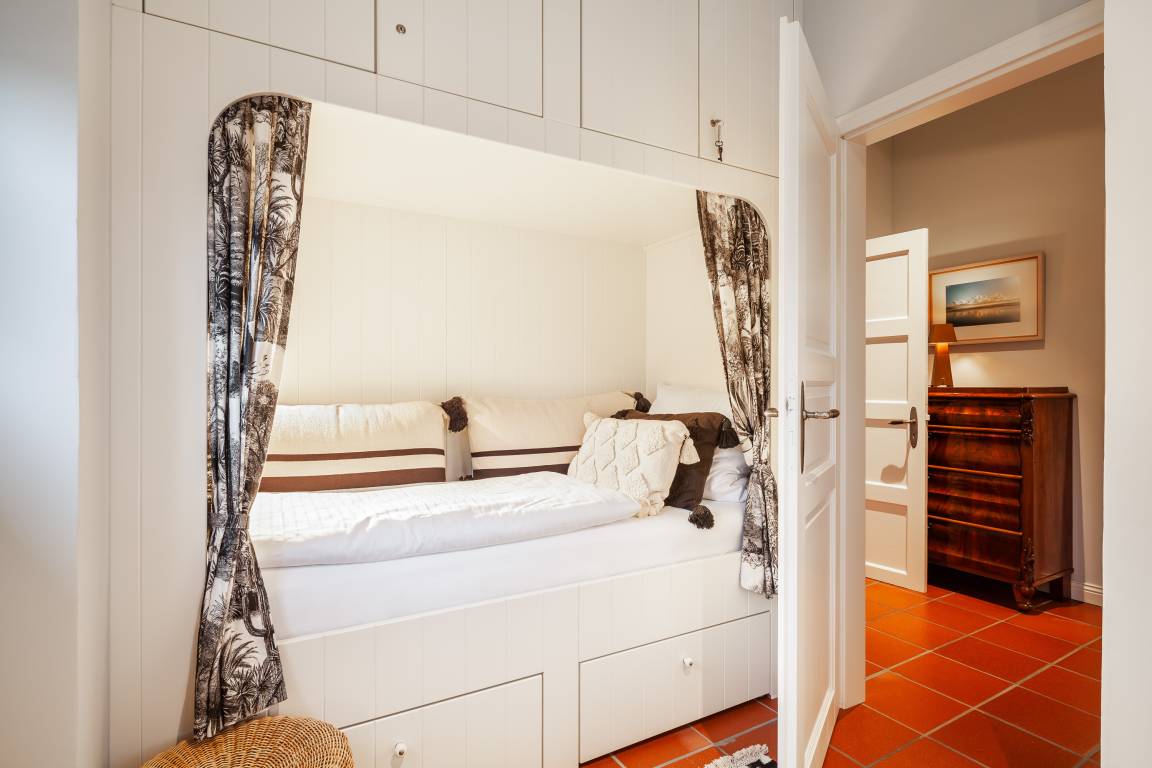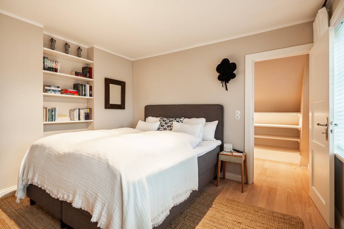 Thies Huus wurde in den 1920er Jahren von dem Föhrer Schmied Matthias Lerche erbaut. Im Frühjahr 2020 wurde das Haus komplett saniert und im Obergeschoss entstanden zwei Schlafzimmer mit Boxspringbetten und jeweils einem angrenzenden Duschbad mit WC. Im Anbau entstand ein kleines Studierzimmer mit Schlafalkoven, sodass bequem 4 – 5 Personen im Haus übernachten können. Im EG befindet sich ein weiteres Bad mit Wanne und WC.