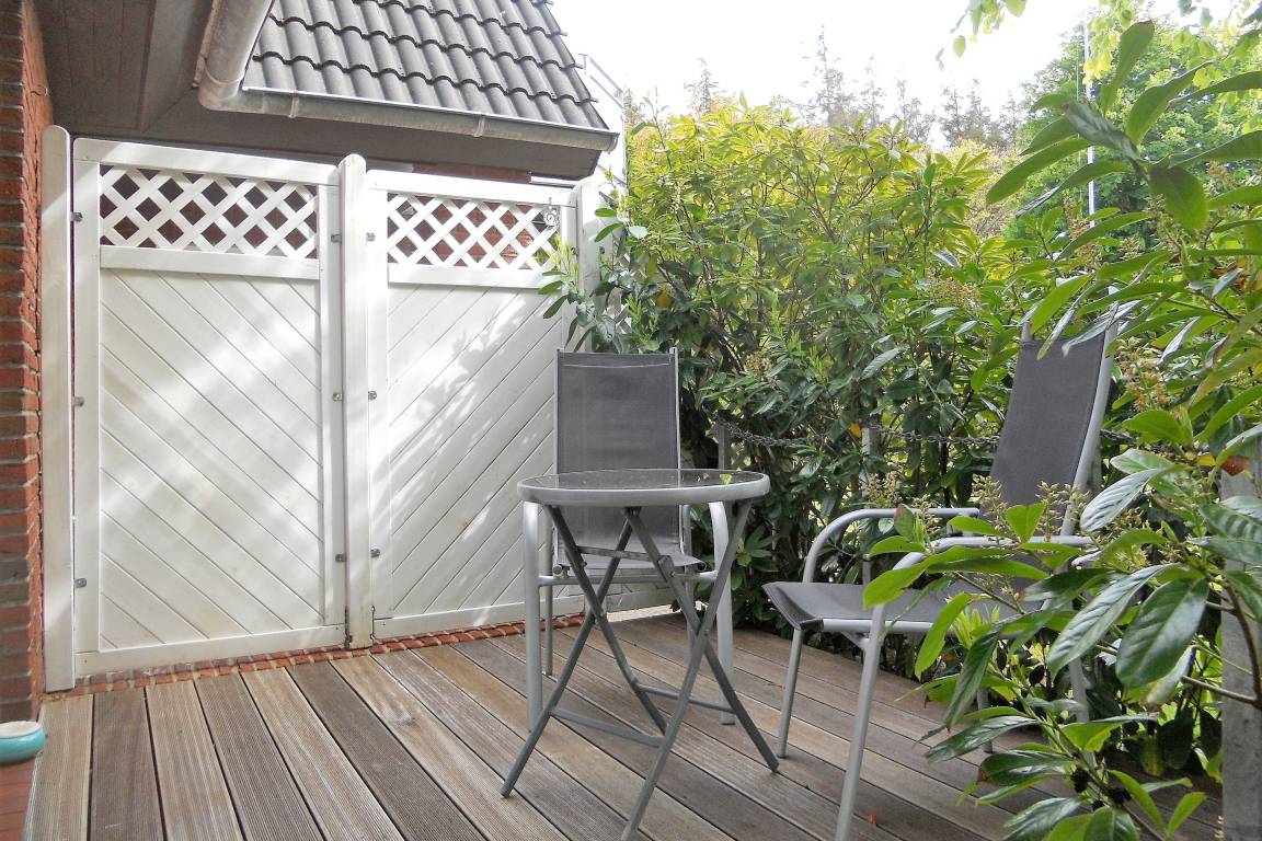 Ruhig gelegen mitten in der kleinen Föhrer Stadt Wyk liegt unsere gepflegte, kleine Erdgeschosswohnung "Rugstieg 8/2" (33qm) für 2 Personen. Das lichtdurchflutete Wohnzimmer mit Schlafsofa, Flachbild-TV, DVD-Player, WLAN, Stereoanlage und integrierter Essecke bietet Ihnen den Zugang zur eigenen kleinen Terrasse, wo Sie schöne Sonnenstunden genießen können. Eine Pantryküche mit 2 Kochplatten, Kühlschrank mit Gefrierfach, Kaffeemaschine (Senseo Duo) und Wasserkocher ist zweckmäßig und funktional. Das Das Bad mit Fenster verfügt über eine Dusche mit Schiebetür und ist hell gefliest. Im Schlafzimmer finden Sie zwei Einzelbetten vor, die geruhsame Nächte versprechen. Das Haus mit seinen vier allergikergerechten Ferienwohnungen bietet seinen Gästen zur gemeinschaftlichen Nutzung weiterhin im Untergeschoss Waschmaschine und Trockner, eine Sauna und einen kleinen Fitnessraum an sowie den gemeinschaftlich Garten.
