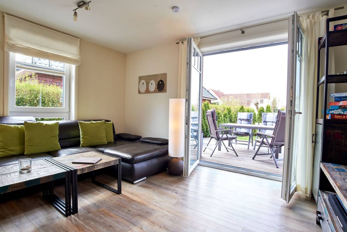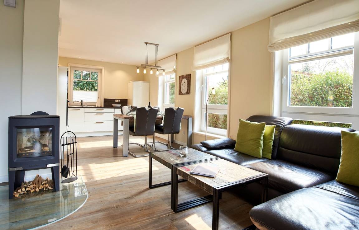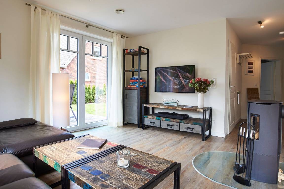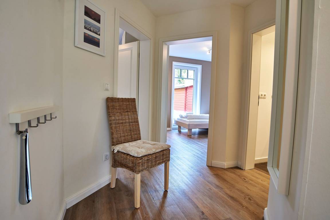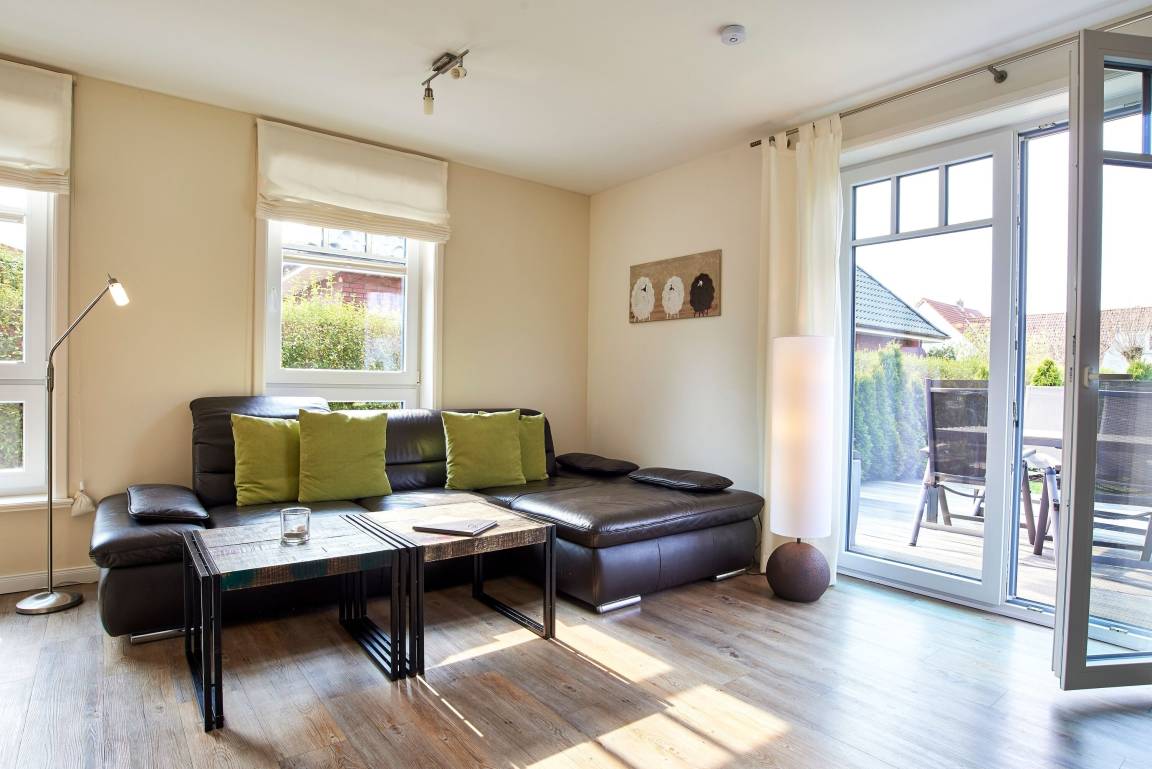Die Wohnung befindet sich im Erdgeschoß und verfügt über einen Terrasse mit angrenzendem Garten. Im Wohnbereich gibt es eine gemütliche Couch, eine voll ausgestattete Küche, ein Kaminofen für kühle Abende, ein Bad mit Dusche und Badewanne, ein Gäste-WC und zwei Schlafzimmer. Zur Wohnung gehört ein PKW-Stellplatz vor dem Haus, Ihre Fahrräder können Sie beim Haus oder im Fahrradschuppen abstellen. Im Keller des Hauses steht Ihnen eine gemeinschaftliche Sauna mit Ruheliegen kostenfrei zur Verfügung - so kommt auch Ihre Gesundheit nicht zu kurz.