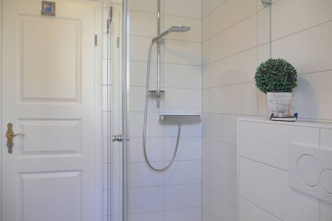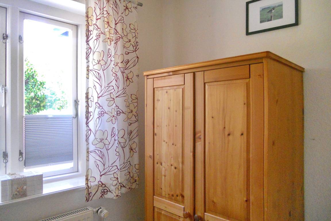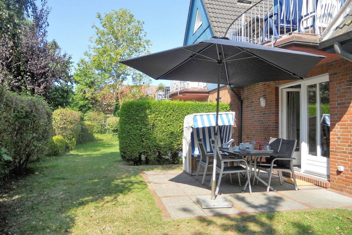 Die schöne Anlage Friesenperle in der Feldstraße 15 a und b besteht aus zwei Häusern mit jeweils 6 Wohneinheiten. Auf dem Grundstück befindet sich eine kleine Grillecke, Abstellmöglichkeiten für Ihre Fahrräder, für jede Wohnung ein eigener Parkplatz sowie für unsere kleinen Gäste eine Doppelschaukel mit Kletterleiter um sich auszutoben. Im vorderen Gebäude steht allen Gästen zur gemeinschaftlichen Nutzung im Keller ein Waschraum mit Waschmaschine und Trockner ( jeweils gegen Gebühr), Wäscheständer und Bügelbrett mit Bügeleisen sowie eine Sauna (gegen Gebühr) mit Duschmöglichkeit und Ruheraum zur Verfügung. Durch die Lage in zweiter Reihe zur Straße ist die Anlage besonders bei befreundeten Familien, die gerne gemeinsam verreisen möchten besonders beliebt, doch auch Pärchen verleben wunderbare Urlaubstage. Die zentrale Lage ermöglicht es in wenigen Minuten das Friesenmuseum, das Wellenbad Aqua Föhr und den Abenteuerspielplatz Löwenhöhle im nahe gelegenen Wald zu besuchen oder einen Spaziergang durch die hübschen Gassen der Wyker Innenstadt zu unternehmen, um die vielen freundlichen Cafés, Geschäfte und Restaurants kennenzulernen. Unsere gemütliche EG-Wohnung Friesenperle 9 (ca. 45m) lädt zu herrlichen Urlaubstagen ein. Der offengestaltete Wohnbereich mit integriertem Essplatz und moderner Küchenzeile ist der Mittelpunkt der Wohnung und ist von den Eigentümern mit viel Liebe zum Detail eingerichtet und mit WLAN, Flachbild-TV, Stereoanlage und einem Blu-ray-Player ausgestattet wurden. Hier lassen sich gemütliche Abende verbringen oder genießen Sie einen Spieleabend am gemütlichen Esstisch. Die Küchenzeile ist ebenfalls sehr gut ausgestattet mit Backofen, Ceranfeldherd mit Dunstabzugshaube, Geschirrspüler, Wasserkocher, Filterkaffeemaschine und einer Tassimo-Maschine, so dass Ihnen der gehobene Komfort, den Sie von der Wohnung erwarten dürfen, geboten wird. Des Weiteren sind 2 Schlafräume vorhanden mit einem Doppelbett (160 x 200 cm) im Schlafzimmer und einem Etagenbett (80x 200 cm) im Kinderzimmer. Das Bad verfügt über einen Handtuchheizkörper, eine Dusche mit sehr flachem Einstieg, Fenster und einem Schrank, der Platz für Ihre Utensilien bereitstellt. Auf die nach Süden ausgerichtete Terrasse mit Möbeln und Strandkorb(ca. von April bis Oktober)gelangen Sie über eine doppelflügelige Tür und können schöne Sonnenstunden verbringen. Der gemeinschaftliche Grillplatz eignet sich hervorragend um neue Urlaubsbekanntschaften zu schließen und nach einem erholsamen Tag am Strand oder einer erlebnisreichen Inseltour den Abend in geselliger Runde mit Würstchen, Steak und Flens ausklingen zu lassen.
