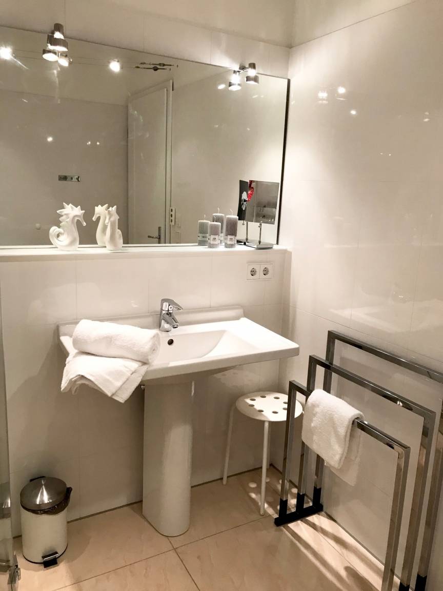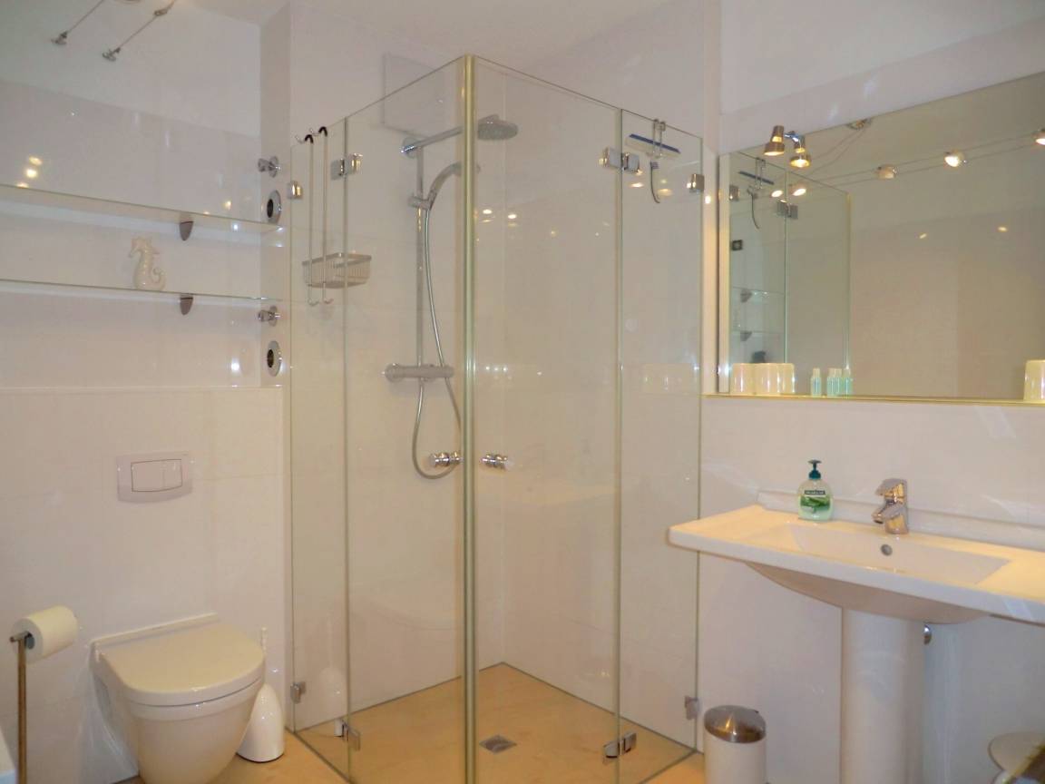 Die Wohnung besticht durch ein exklusives Ambiente. Breite Flügeltüren zum Schlafbereich schaffen eine Sphäre von Eleganz und Großzügigkeit. Viele ausgesuchte Details heißen Sie willkommen. Eine hochmoderne Küche, ein Bad mit Rain-Air-Dusche mit bodentiefem Einstieg, portugiesische Fliesen mit Fußbodenheizung in der gesamten Wohnung, ein Elektro-Kamin mit Umluft und die hauseigene Sauna lassen keine Wünsche offen. Haustiere sind bei uns herzlich willkommen (gegen Gebühr).
