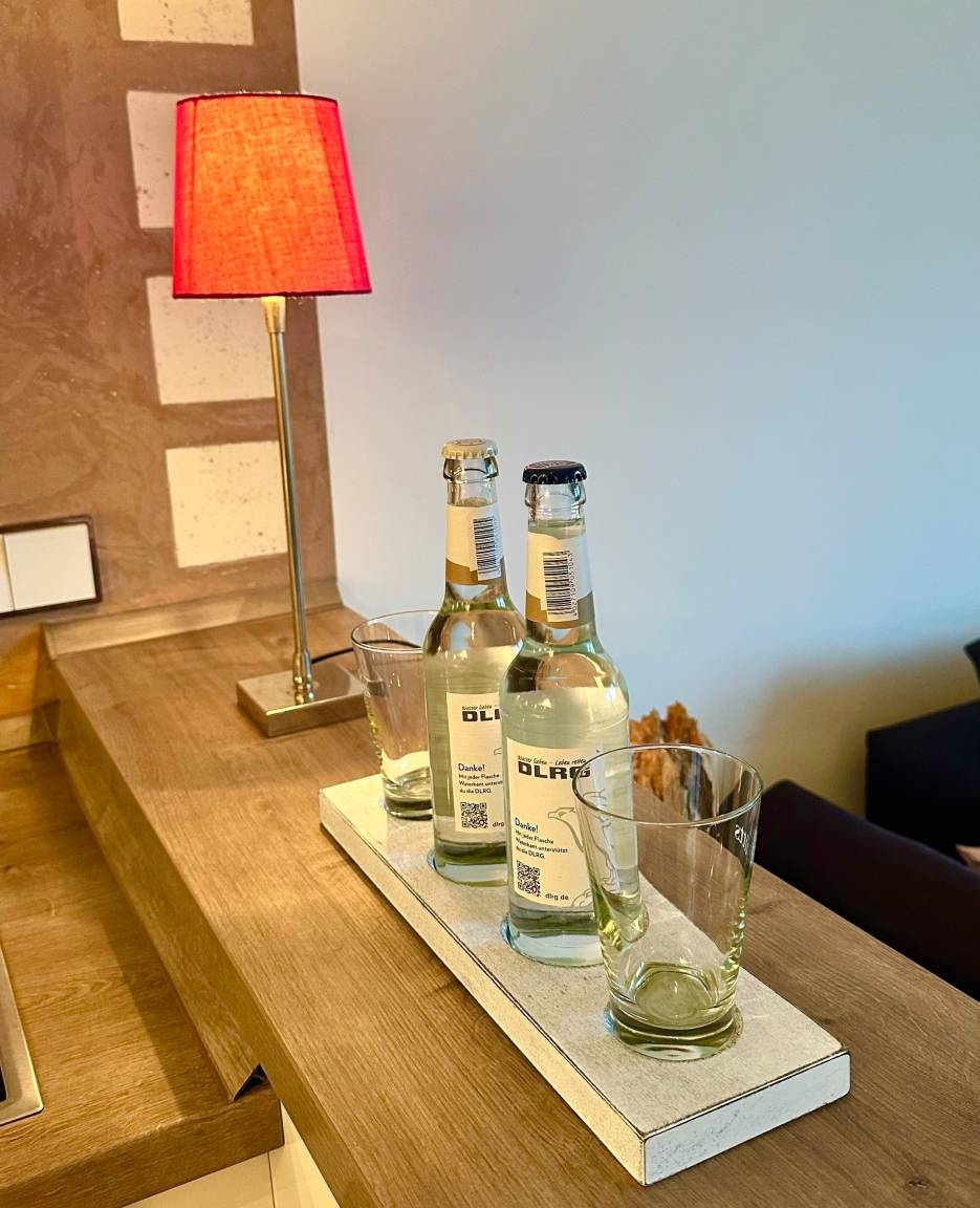 Die exklusiv ausgestattete und helle Wohnung ist sehr gemütlich und verfügt über 2 Schlafzimmer, 1 Wohnzimmer mit integrierter moderner Küchenzeile mit Backofen und Microwelle , sowie ein Badezimmer mit ebenerdiger Dusche. Ein W-LAN Anschuss steht Ihnen kostenfrei zur Verfügung. In jedem Zimmer finden sie ein TV-Gerät. Sauna und Waschmaschinen, sowie ein Trockner stehen gegen Gebühr im Hauskomplex bereit. Natürlich verfügt Ihre Wohnung über Bügeleisen und -brett, sowie einen Wäscheständer. Auf dem Grundstück finden Sie Unterbringungsmöglichkeiten für Ihre Fahrräder und einen kostenfreien Parkplatz.