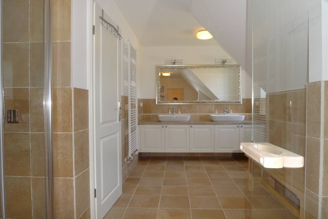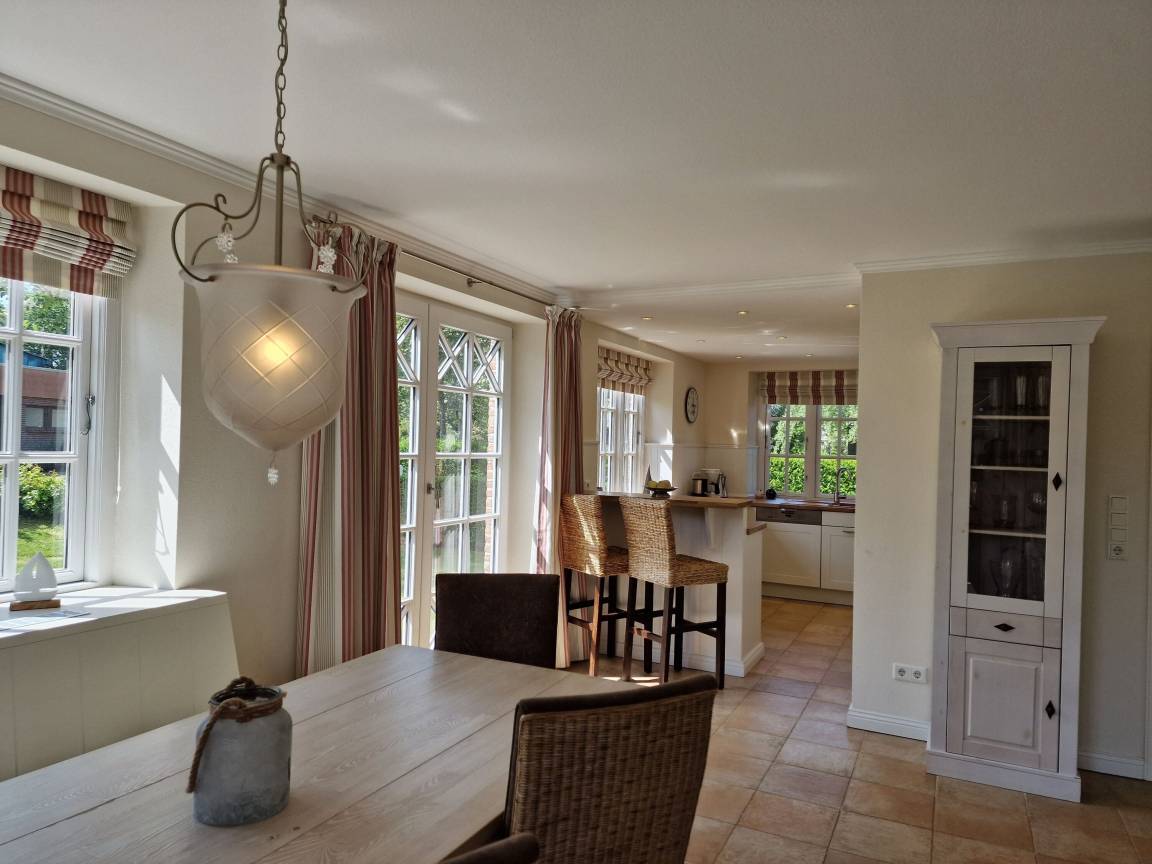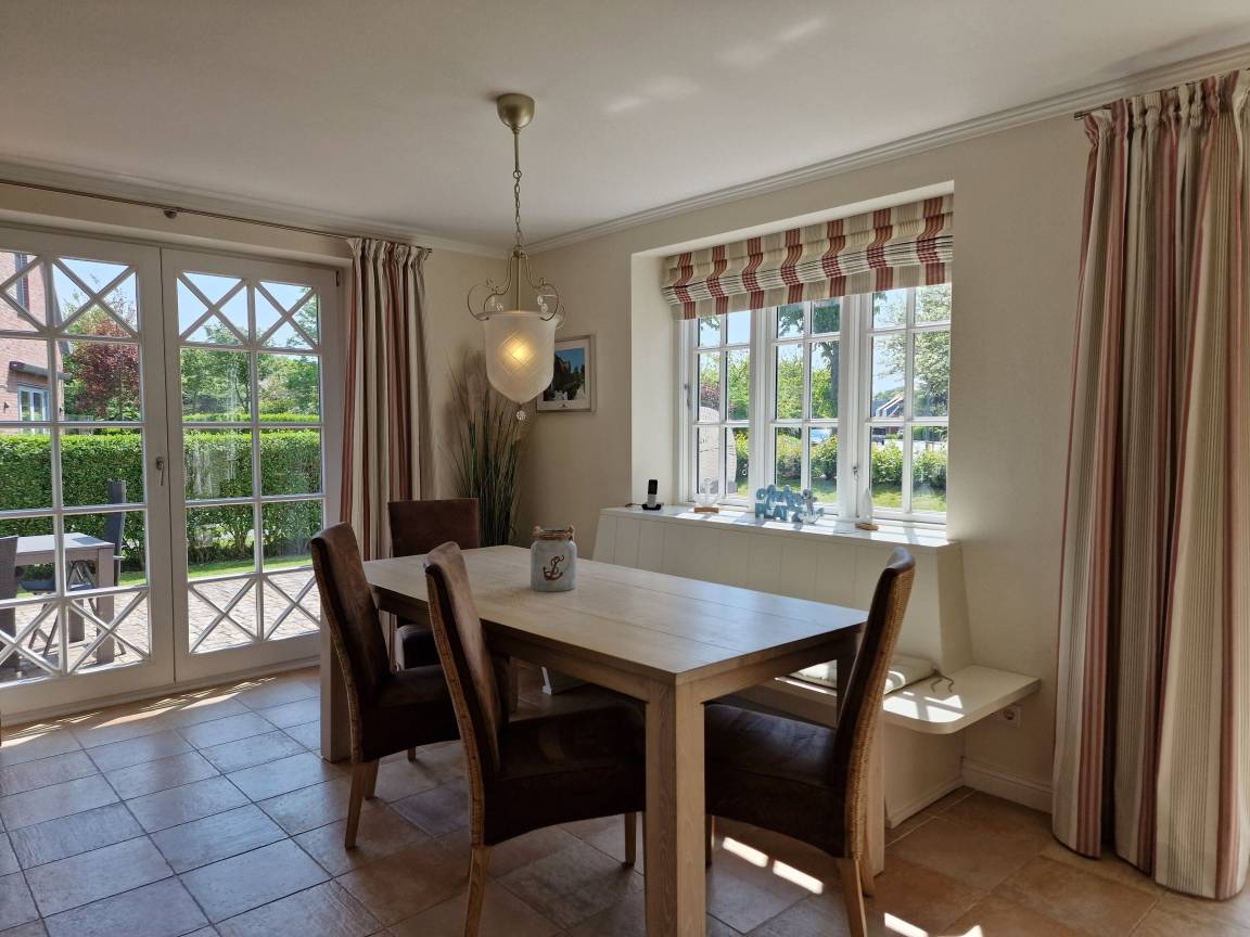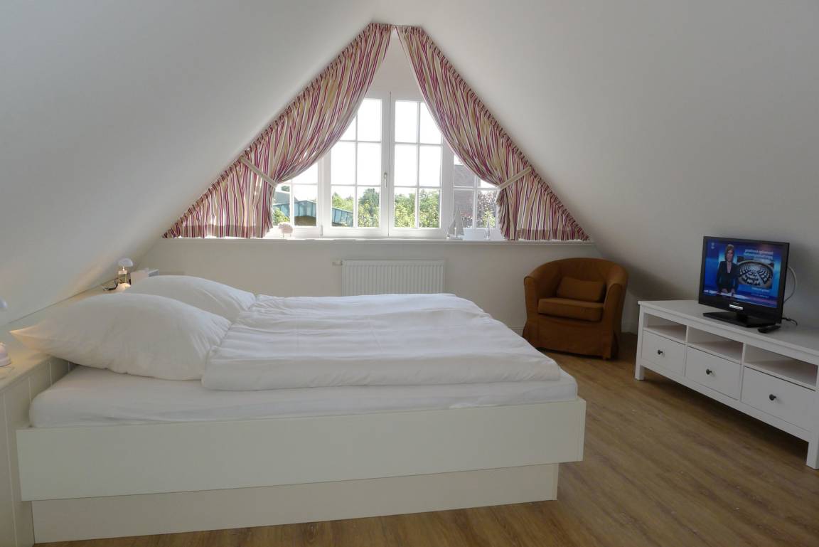 Im Erdgeschoß befindet sich der großzügige Wohnbereich mit einer bequemen Couch und Kaminofen für gemütliche Abende, ein großer Esstisch mit Stühlen und Bank, eine vollausgestattete Küche und ein Duschbad mit Waschmaschine und Trockner zur kostenfreien Nutzung. Auf der Terrasse mit angrenzendem Garten finden Sie Terrassenmöbel, einen Grillkamin sowie einen Strandkorb während der Saison. Im Obergeschoß stehen Ihnen zwei Schlafzimmer mit Doppelbett (davon 1 x mit TV) und ein zweites großes Bad mit Sauna (gegen Gebühr) zur Verfügung. Im Dachgeschoß befindet sich durch eine Tür getrennt das dritte Schlafzimmer mit Doppelbett und TV. Zur Wohnung gehört außerdem ein PKW-Stellplatz hinter dem Haus. Ihre Fahrräder können Sie im abschließbaren Fahrradschuppen abstellen.