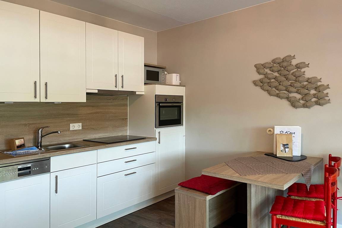Das Haus Seeblick befindet sich in bester Lage direkt am Sandwall. Die Fußgängerzone mit den kleinen Geschäften, einladenden Cafés und Restaurants sowie der feinsandige Strand und die Nordsee sind nur einen Katzensprung entfernt...Willkommen in unserer charmanten Ferienwohnung Seeblick 16 direkt am Sandwall auf der wunderschönen Nordseeinsel Föhr! Mit einer Größe von ca. 46 m² bietet die Unterkunft den idealen Rückzugsort für zwei Gäste, die Erholung und Komfort suchen. Genießen Sie die Nähe zur Nordsee und lassen Sie sich von der einzigartigen Atmosphäre der Insel verzaubern. Unser gemütliches Wohnzimmer lädt zum Entspannen ein und bietet eine gemütliche Sitzecke sowie eine Essgruppe, an der Sie Ihre Mahlzeiten genießen können. Die gut ausgestattete Küchenzeile lässt keine Wünsche offen – ob Frühstück, Mittagessen oder Abendessen, hier können Sie nach Herzenslust kochen. Moderne Annehmlichkeiten wie WLAN und TV sorgen dafür, dass Sie auch im Urlaub immer bestens vernetzt bleiben. Das Badezimmer mit Fußbodenerwärmung ist mit einer komfortablen Dusche und einem Handtuchheizung ausgestattet und verfügt über eine Waschmaschine, den Sie kostenfrei nutzen können – ideal für längere Aufenthalte. Das separate Schlafzimmer bietet zwei bequeme Einzelbetten (90 x 200 cm), die für erholsame Nächte sorgen. Unser Seeblick 16 befindet sich in einer der besten Lagen auf Föhr: direkt am beliebten Sandwall, der Strandpromenade von Wyk. Von hier aus erreichen Sie den Strand, gemütliche Cafés, Restaurants und Einkaufsmöglichkeiten in wenigen Minuten zu Fuß. Genießen Sie den Blick auf das Meer oder unternehmen Sie ausgedehnte Spaziergänge entlang der Küste. Buchen Sie jetzt Ihre Auszeit auf Föhr und erleben Sie unvergessliche Tage in unserer liebevoll eingerichteten Ferienwohnung Seeblick 16! Wir freuen uns darauf, Sie bei uns willkommen zu heißen.