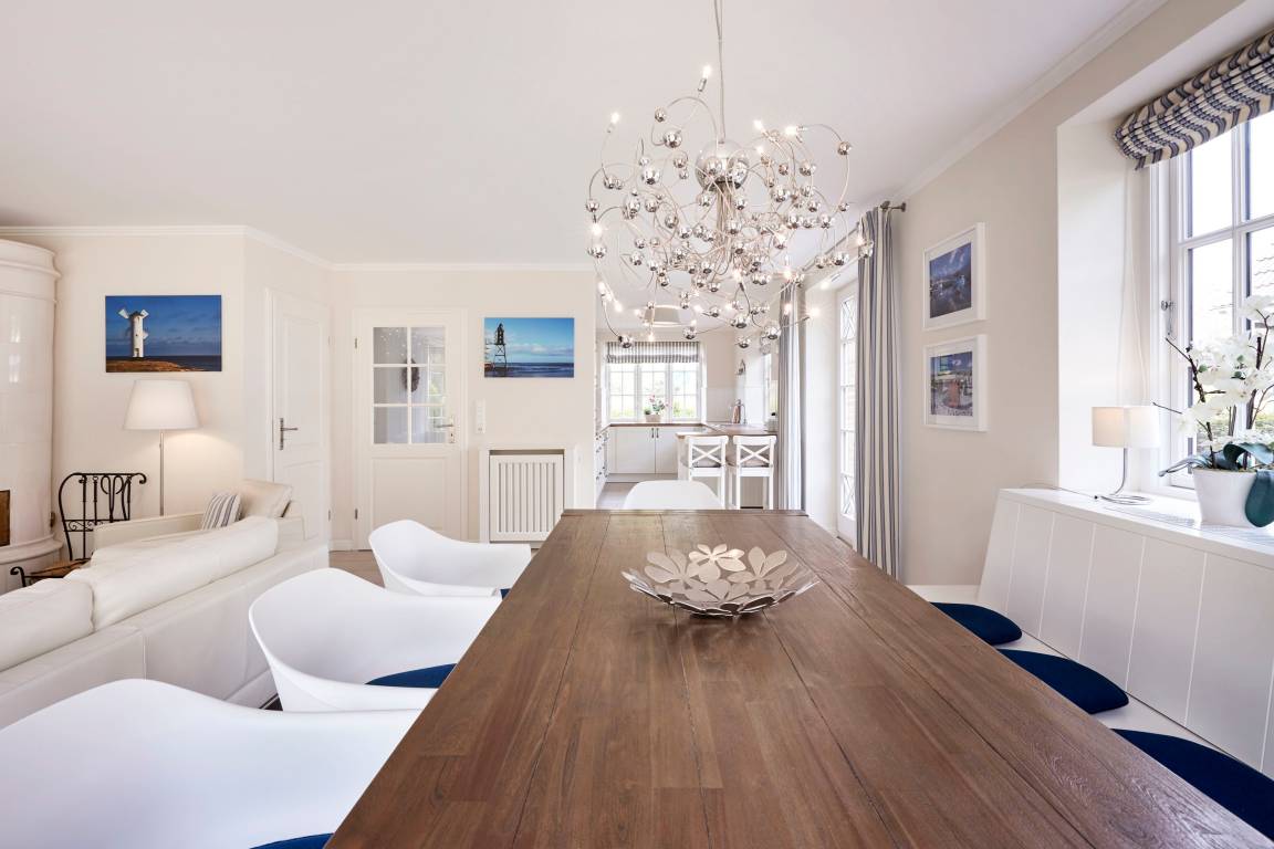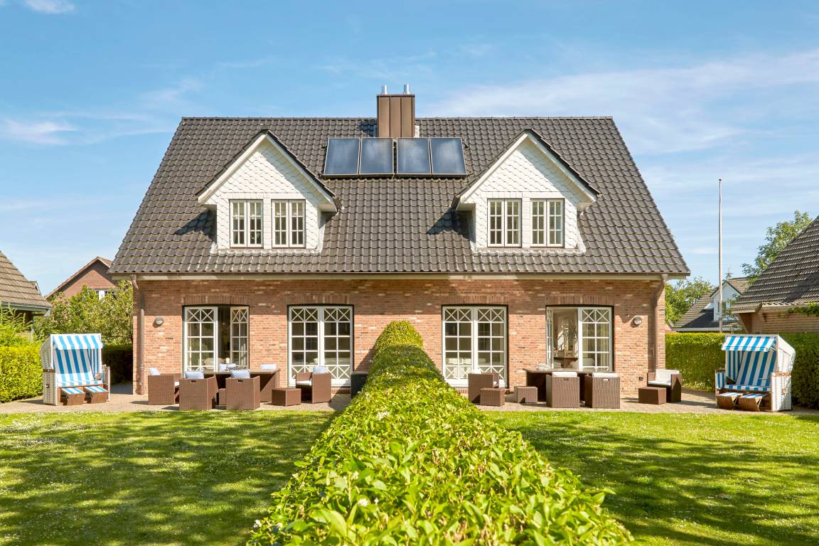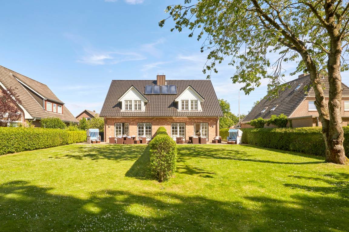 Herzlich willkommen im diesem Ferienhaus, das in zwei Haushälften unterteilt wurde. Es liegt in einer absolut ruhigen Sackgasse am Rande von Wyk. Beide Doppelhaushälften wurden sehr hochwertig und geschmackvoll ausgestattet. Der Golfplatz liegt direkt um die Ecke, zum Südstrand sind es etwa 10 Gehminuten. Zur Innenstadt benötigen Sie etwa 15 bis 20 Gehminuten. Das Haus steht mit seinem großzügigen Garten direkt am Wald. Im Sommer genießen Sie die schönen Sonnenstunden auf der Terrasse mit Strandkorb und Gartenmöbeln, in den kühleren Monaten den Kachelofen im Wohnzimmer sowie die großzügige Sauna im Bad des OG. Freuen Sie sich auf einen unvergesslichen Urlaub!