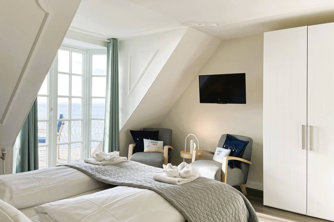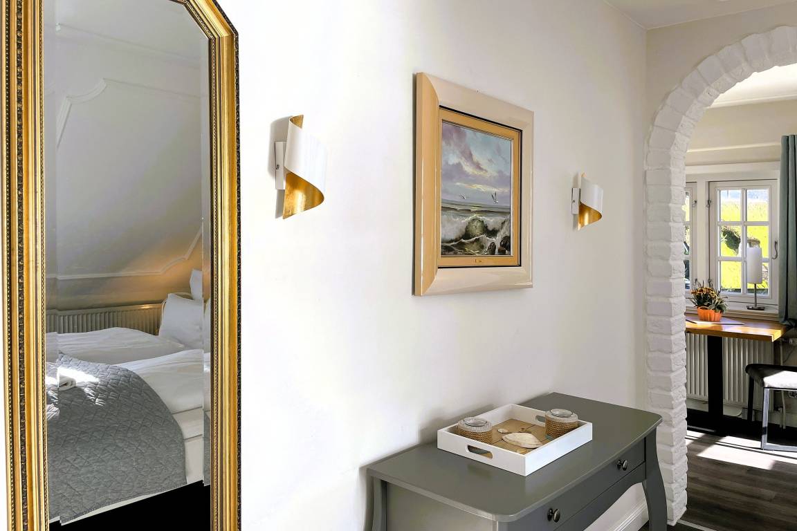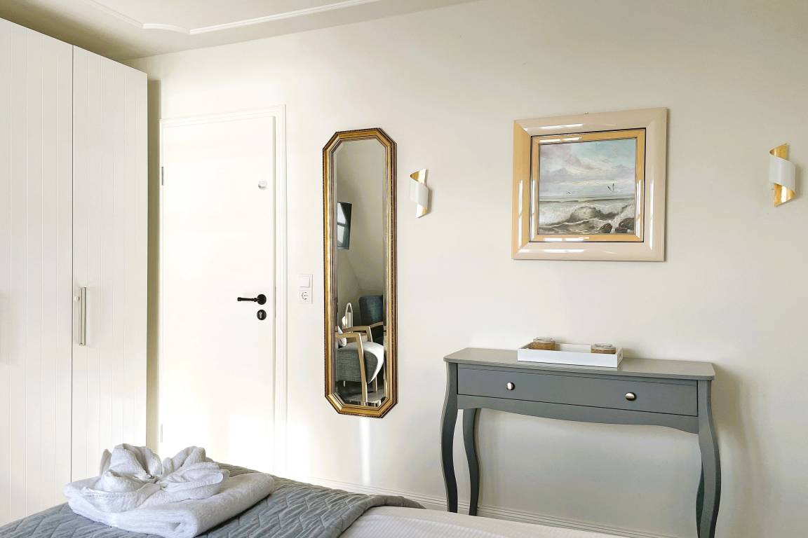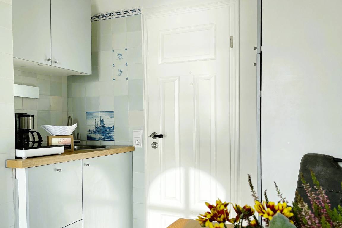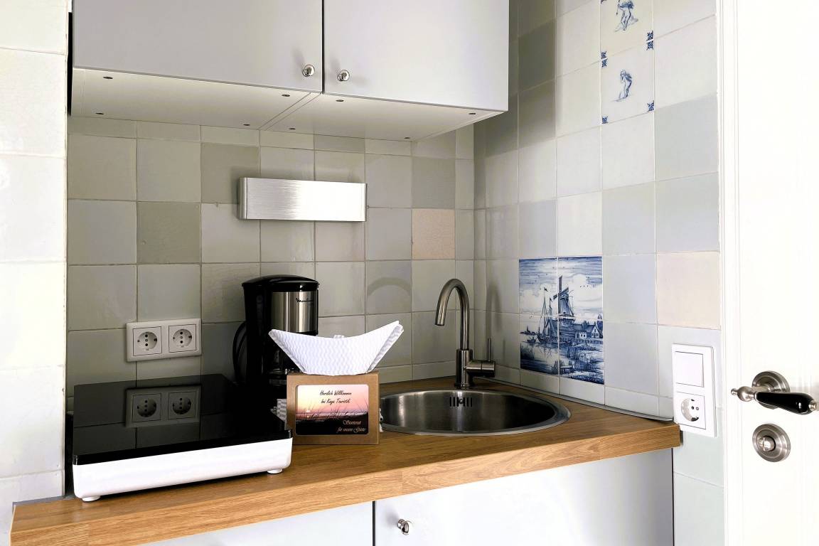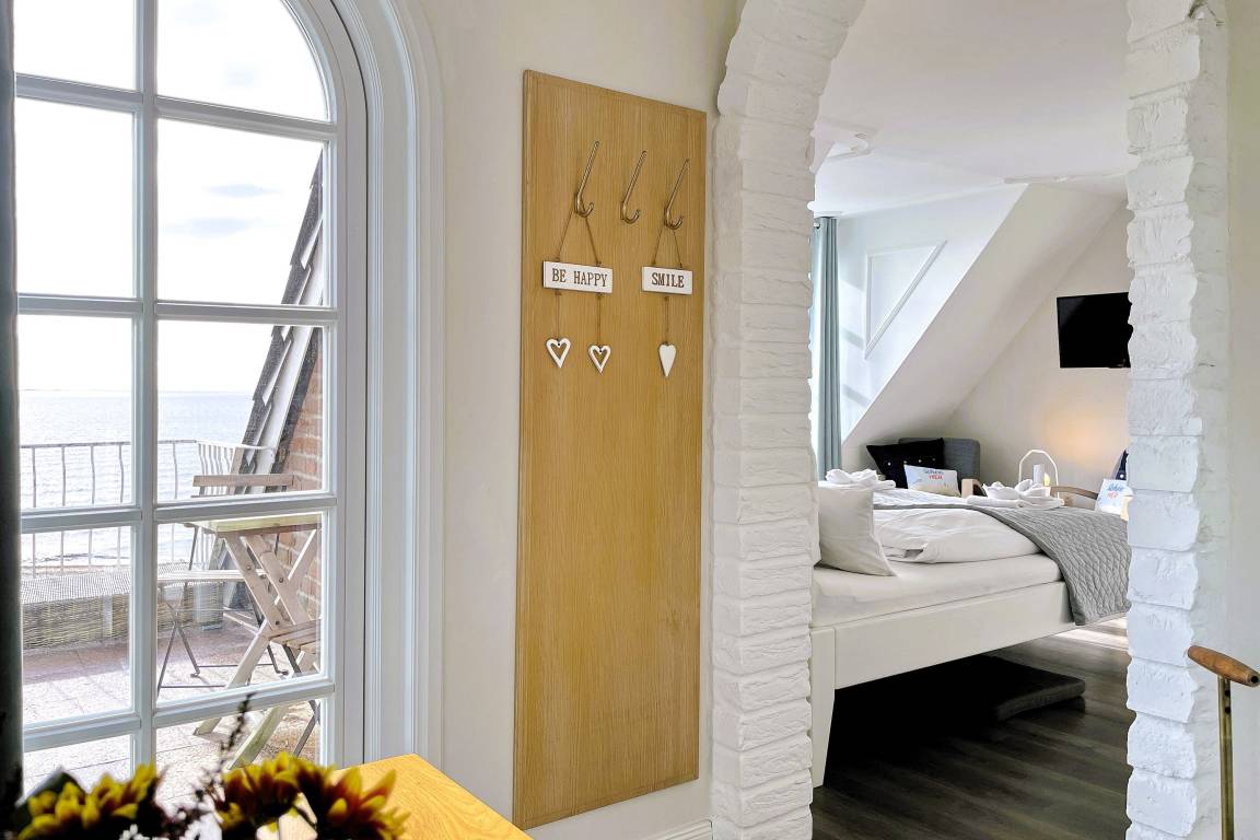 Verbringen Sie eine wundervolle Zeit in der bezaubernden kleinen "Amrumblick" Diese charmante Ein-Zimmer-Oase vereint Wohnen und Schlafen in einem harmonischen Ensemble, ergänzt durch eine praktische Kochnische und ein kompaktes Badezimmer. Das kuschelige Doppelbett verspricht süße Träume und der geräumigen Kleiderschrank bietet genügend Platz für Ihre Urlaubsgarderobe. Eine kleine aber feine Küchenzeile mit 2-Platten-Induktionskochfeld, Mikrowelle, Kaffeemaschine, Toaster, Kühlschrank mit Gefrierfach und einer kleinen Sitzgruppe mit zwei Stühlen vervollständigen die Einrichtung. Das absolute Highlight der "Amrumblick" ist der Balkon. Hier offenbart sich Ihnen ein atemberaubendes Panorama über die Nordsee, die Halligen und Amrum. Lassen Sie den Tag bei einem Glas Wein ausklingen und genießen Sie den Sonnenuntergang von Ihrer privaten Aussichtsplattform.
