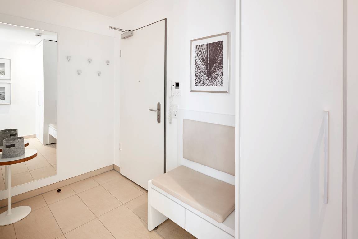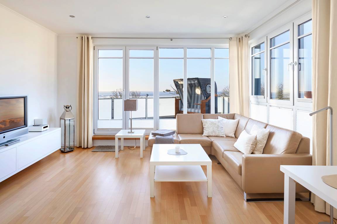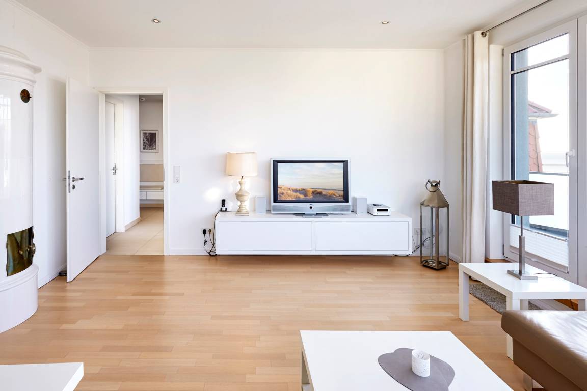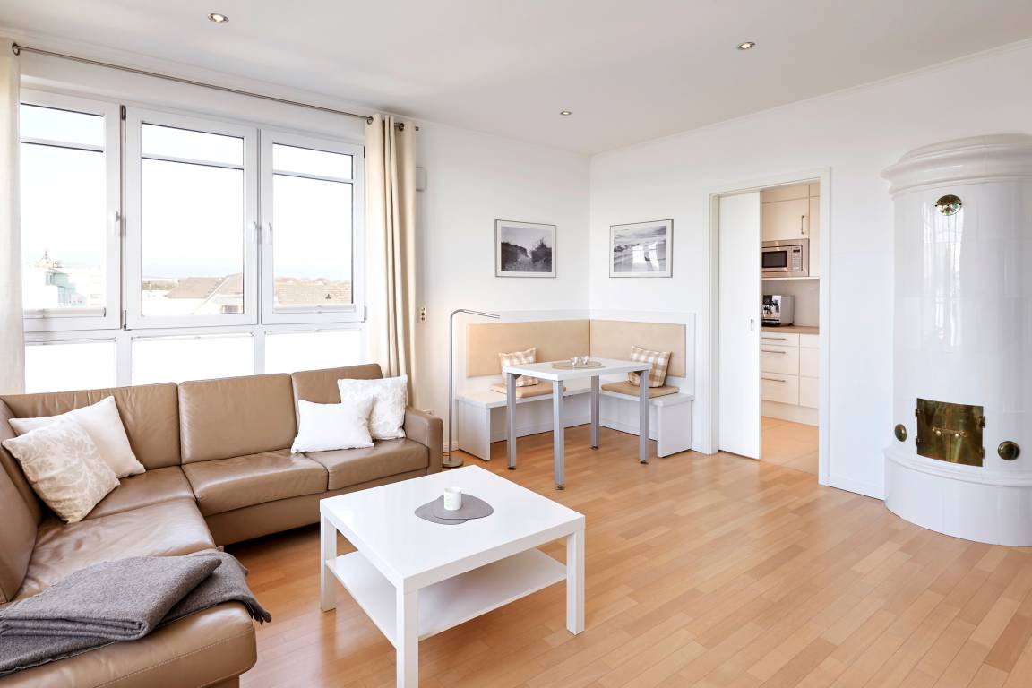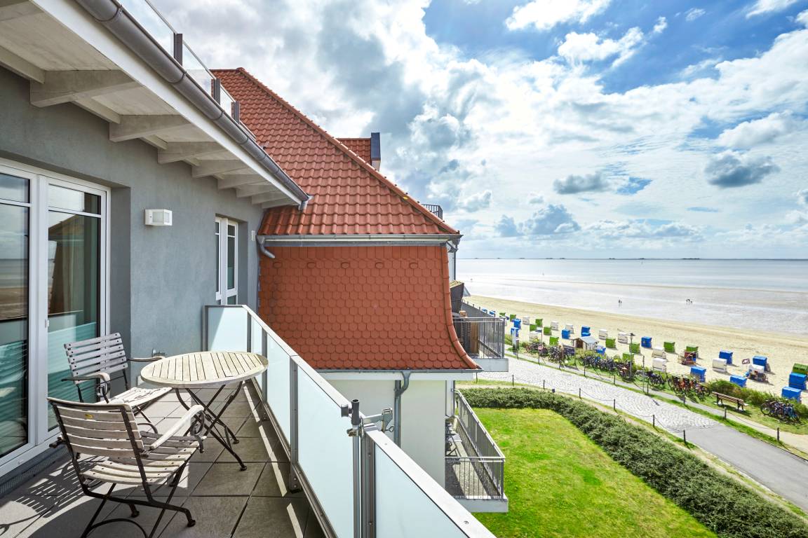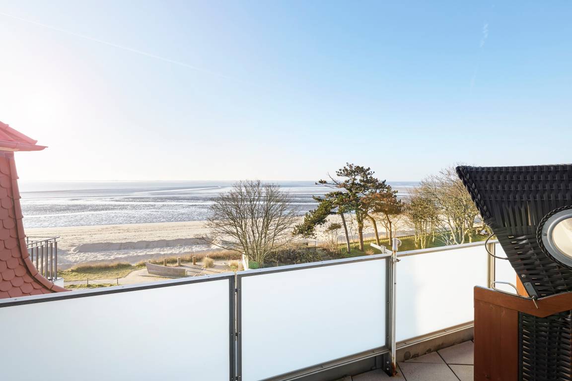 Wir begrüßen Sie im "Schloss am Meer", der exklusiven Wohnanlage direkt am Wyker Südstrand gelegen. Ihre Wohnung liegt im Staffelgeschoss hinter der historischen Fassade, welche beim Neubau erhalten wurde. Hier haben Sie eine Dachterrasse nach Süden gelegen ganz für sich allein und einen Blick auf die Nordsee und die Halligen. Dieser einzigartige Panoramablick ist unvergesslich. In nur wenigen Schritten befinden Sie sich auf der Promenade, die Sie ins Herz von Wyk führt. Hier laden Geschäfte zum Bummeln ein, Cafés und Restaurants verwöhnen Sie mit kulinarischen Köstlichkeiten.