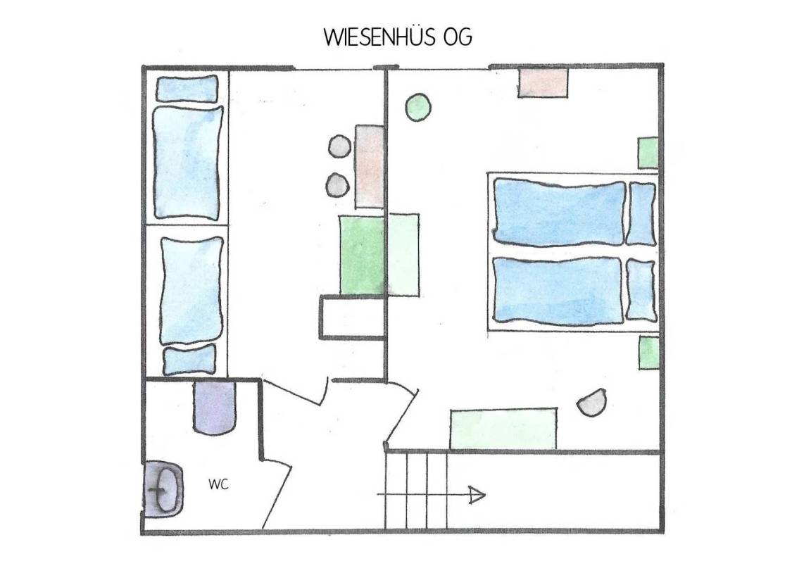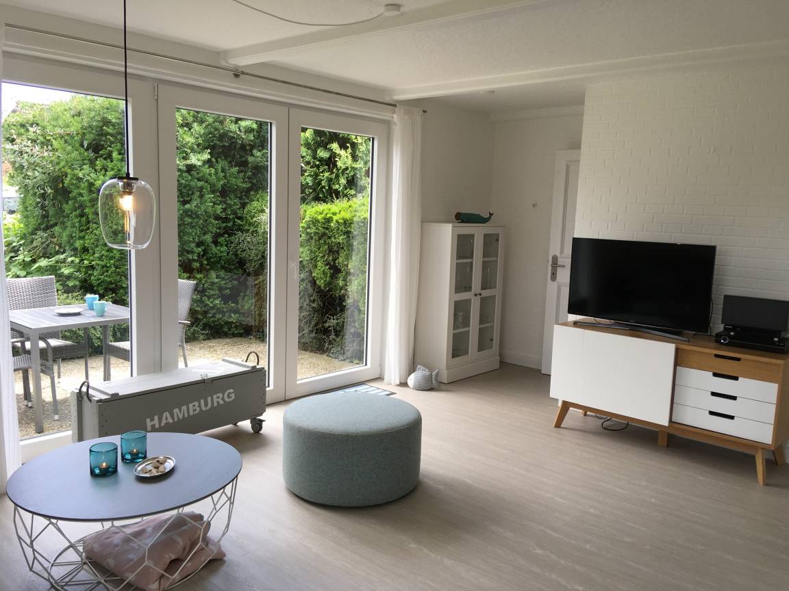 Das ruhig gelegene und von Feldern umgebene Wiesenhüs ist eine DHH, die im Jahr 2020 vollständig renoviert wurde. Das Haus erstreckt sich über zwei Etagen und bietet ausreichend Platz für bis zu vier Personen zuzüglich einer Kinderaufbettung. Im Erdgeschoss befindet sich die offene Küche. Von ihr aus gelangt man einerseits ins Duschbad, andererseits in den großzügigen Wohnbereich mit Ess- und Sitzecke. Dort befindet sich ein Flat-TV, ein Blue-ray-Player und eine Multimediaanlage. An das Wohnzimmer schließt eine Terrasse an, die bis zum späten Mittag Sonne bietet. Für den Genuss der Nachmittags- und Abendsonne steht auf der anderen Hausseite eine zweite Terrasse mit Strandkorb und Blick auf die Wrixumer Mühle zur Verfügung. Im Obergeschoss befinden sich ein weiteres WC, ein Schlafzimmer mit Doppelbett, Einbauschrank und TV sowie ein zweites Schlafzimmer mit Alkovenbetten im friesischen Stil. Hier lässt sich ein zusätzliches Bett als fünfte Schlafgelegenheit herausziehen. Ein privater PKW-Stellplatz befindet sich am Haus. Das gemütliche Wiesenhüs liegt ruhig und ist geschmackvoll, hochwertig-nordisch eingerichtet. Mit gut ausgestatteter Küche, Kaminofen, zwei Terrassen, Grillgelegenheit, eigenem Strandkorb und weitem Blick über die umliegenden Felder bietet es alles, was Sie zum Entspannen brauchen. Das Wiesenhüs liegt perfekt für alle, die einerseits die Ruhe und Idylle eines ursprünglichen friesischen Dorfes suchen, andererseits aber auf das pulsierende Strand- und Stadtleben der angrenzenden Stadt Wyk nicht verzichten möchten. Sowohl die Weiten des Marschlandes mit seinem riesigen Vogelschutzgebiet als auch die Fußgängerzone, zahlreiche Einkaufsmöglichkeiten und der Badestrand sind in wenigen Minuten erreichbar.