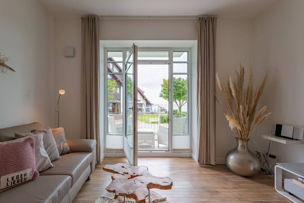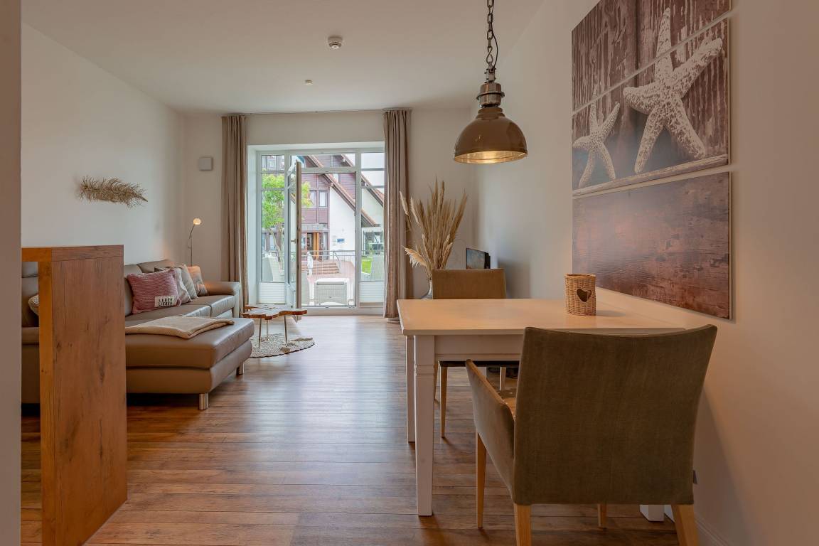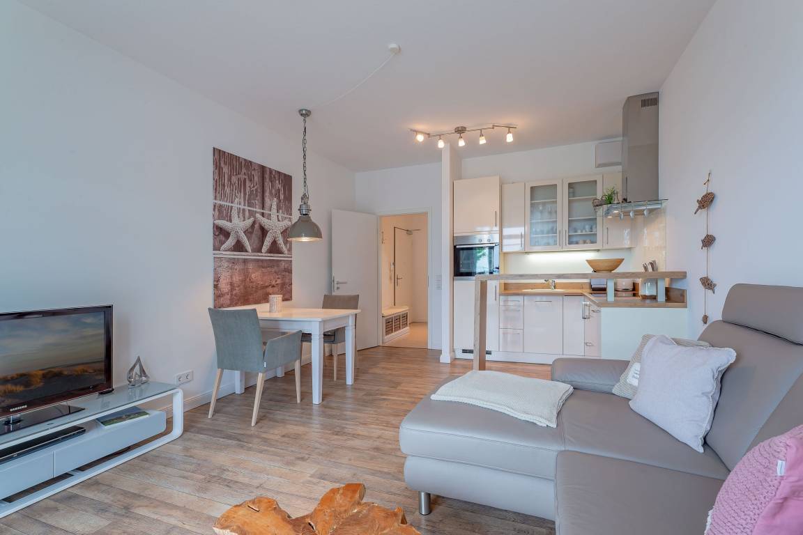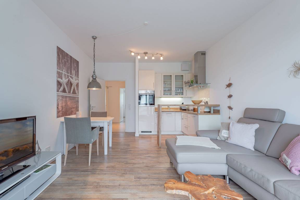 Wir begrüßen Sie im Schloß am Meer, der exklusiven Wohnanlage direkt am Wyker-Südstrand gelegen. Ihre Wohnung liegt im 1.Obergeschoss. Hier haben Sie einen Balkon und den Blick auf die Nordsee und die Halligen. Dieser einzigartige Panoramablick ist unvergesslich. Genießen Sie die Sonne schon beim Frühstück! In nur wenigen Schritten befinden Sie sich auf der Promenade, die Sie ins Herz von Wyk führt. Hier laden Geschäfte zum Bummeln ein, in Cafés und Restaurants werden Sie mit kulinarischen Köstlichkeiten verwöhnt.