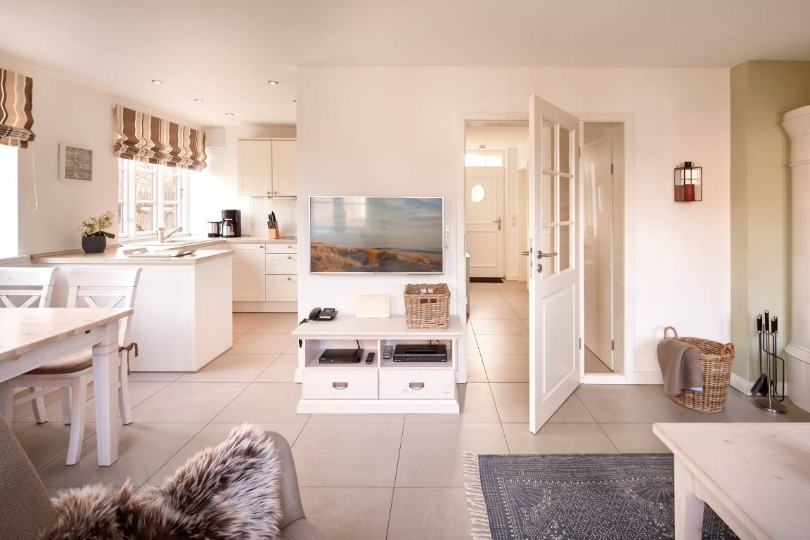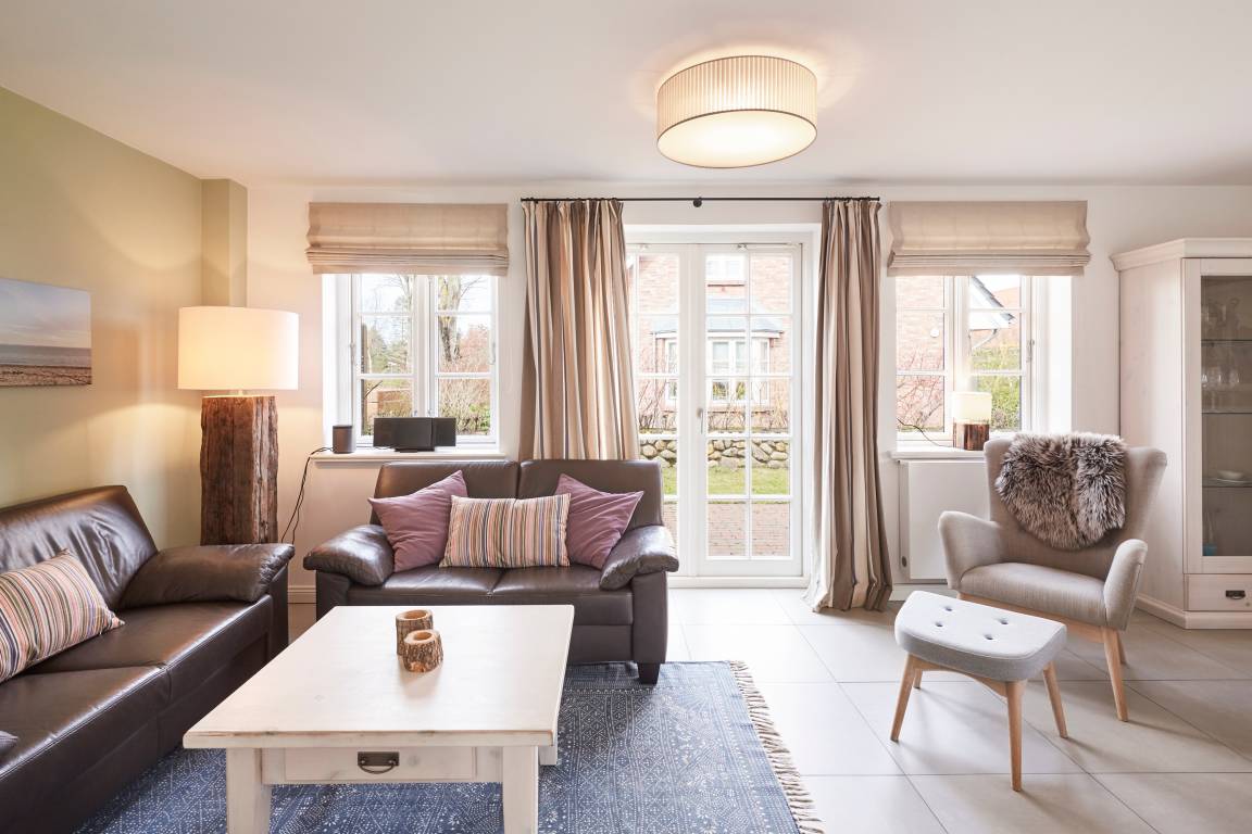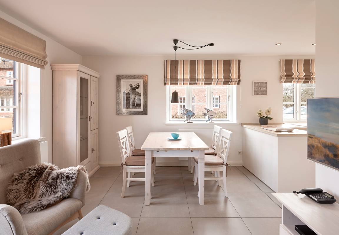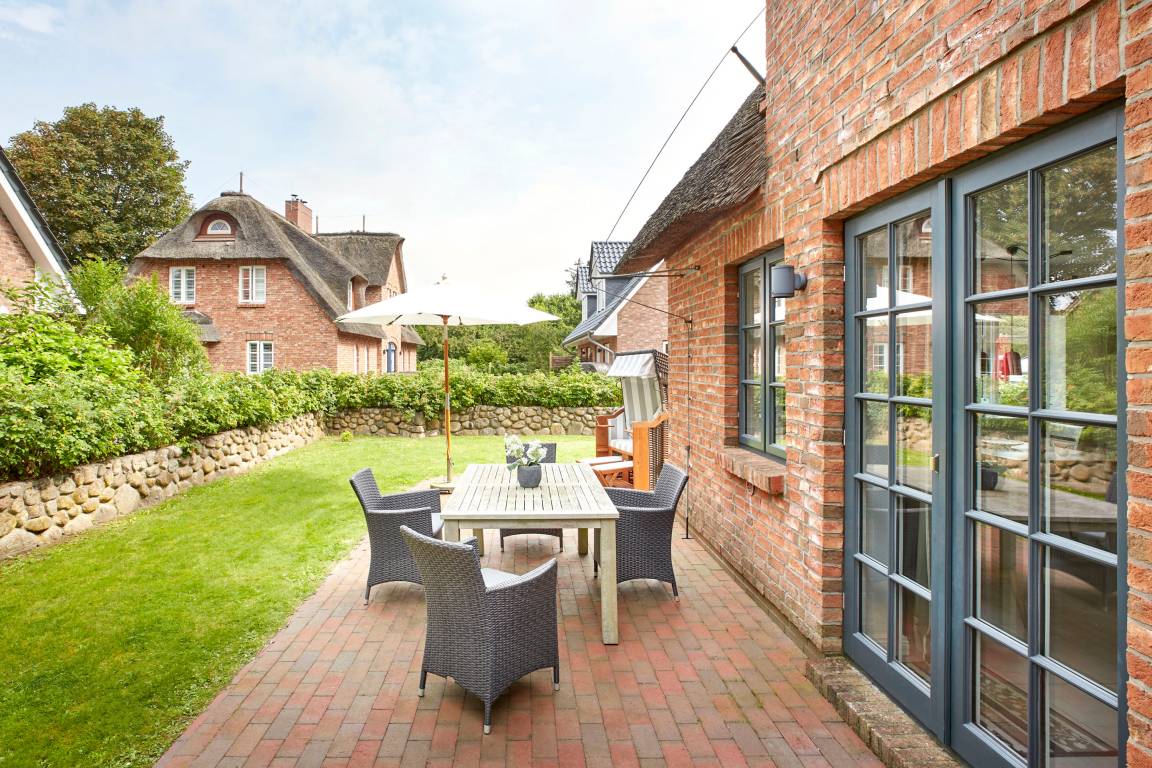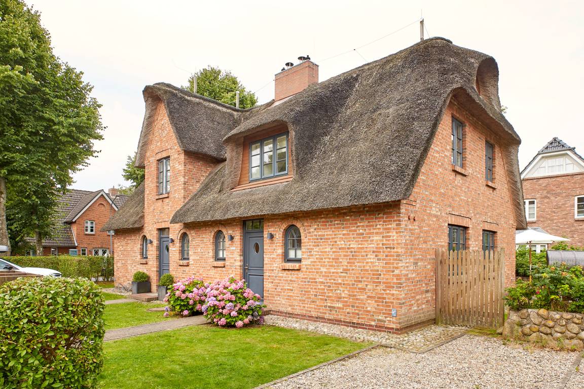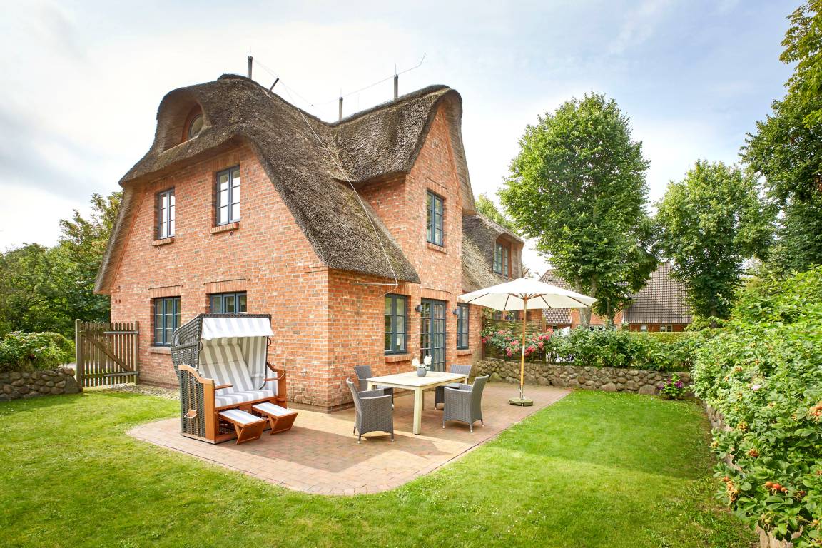 In unmittelbarer Nähe des Wyker Südstrands und in direkter Nachbarschaft zu den Flächen des alten Golfplatzes ist auf dem Gelände des ehemaligen Kaiserhofes die Residenz am alten Golfplatz entstanden. Mit nur wenigen Schritten gelangen Sie zum Strand und zur Promenade, welche Sie ins Herz von Wyk führt. Die Innenstadt mit ihren Cafés, Restaurants sowie Einkaufsmöglichkeiten ist so schnell und bequem zu erreichen. Das Reetdachdoppelhaus ist mit einem traditionellen Friesenwall umgeben. Auch bei der Innenausstattung wurde an alles gedacht - vom großzügigen Wohn-Essbereich mit antikem Kachelofen bis hin zur eigenen Sauna - hier genießen Sie die schönsten Tage des Jahres.